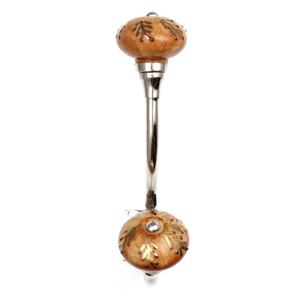 Brown Golden Leaf Ceramic Silver Iron Hook.When Put on Wall or Cabinet It Gives A Sturdy Look. This Hook is Strong Enough to Hold Your Cloths, Keys, Tea Cups, Coffee Mugs, Hand Towels etc.