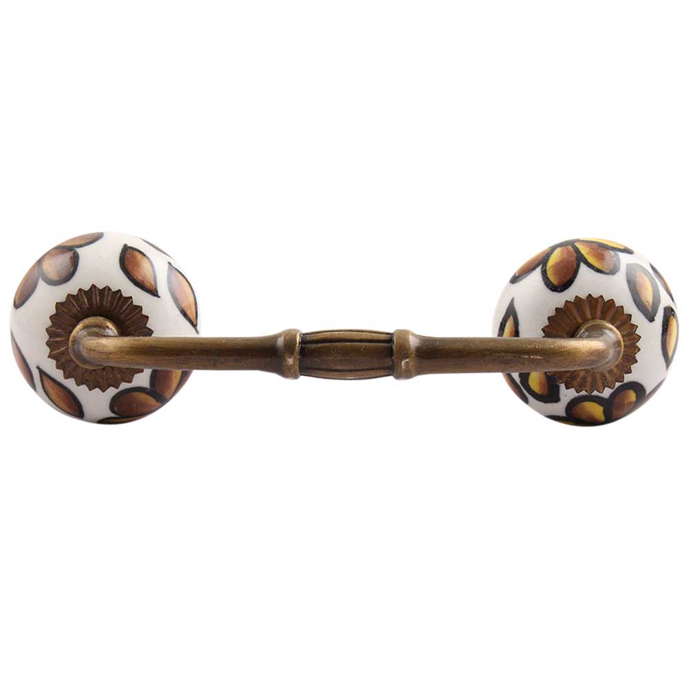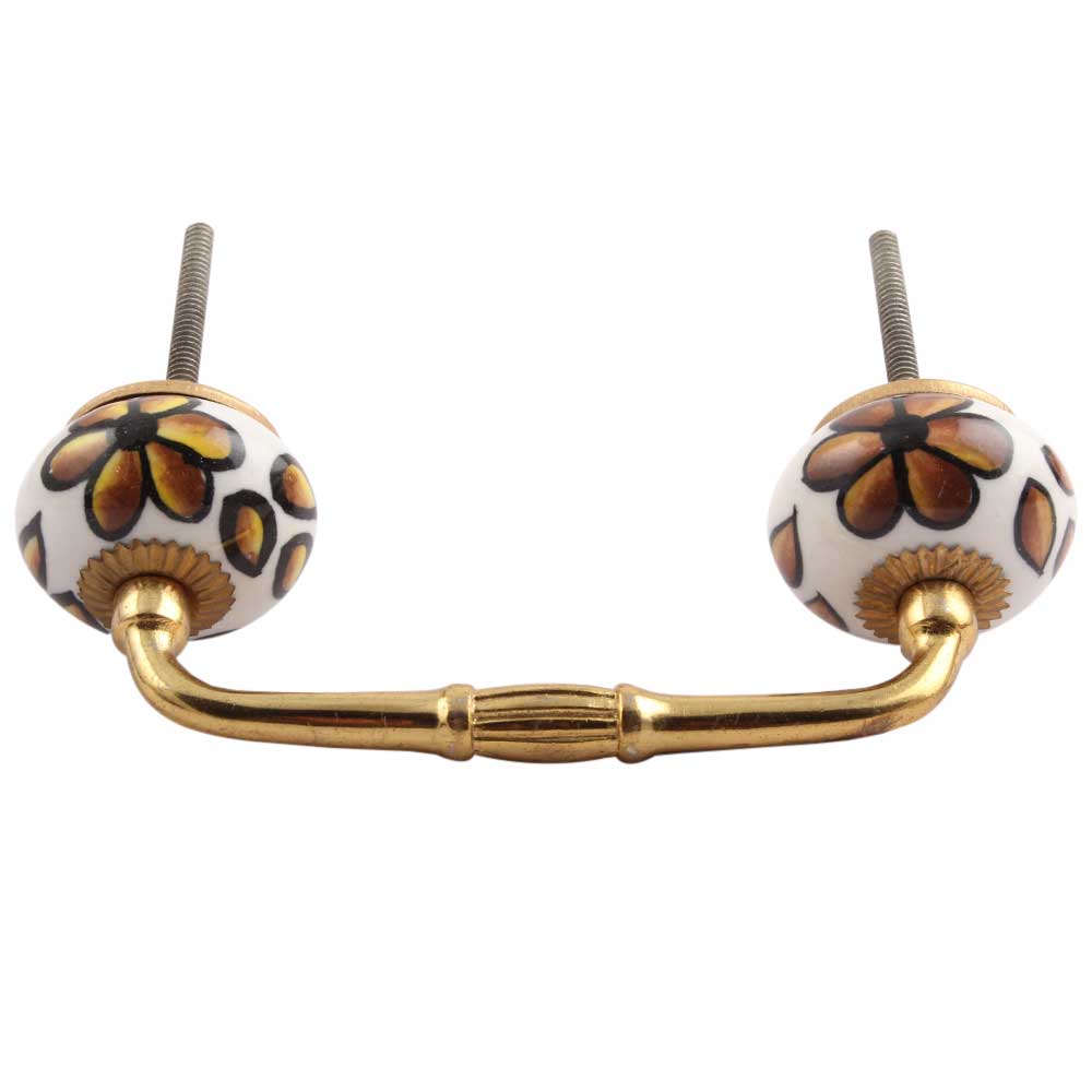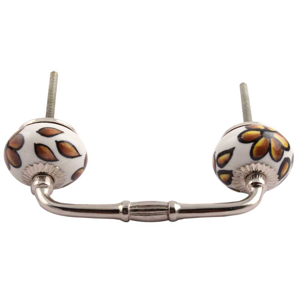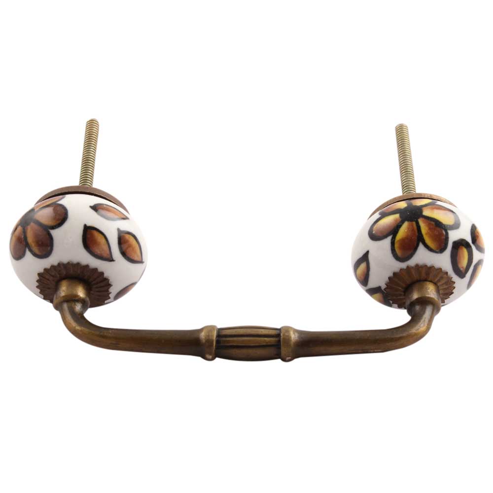Brown Hibiscus Flower Ceramic Bridge Handle. Ideal for Drawer, Dresser, Cabinet, Wardrobe, Cupboard and Almirah.