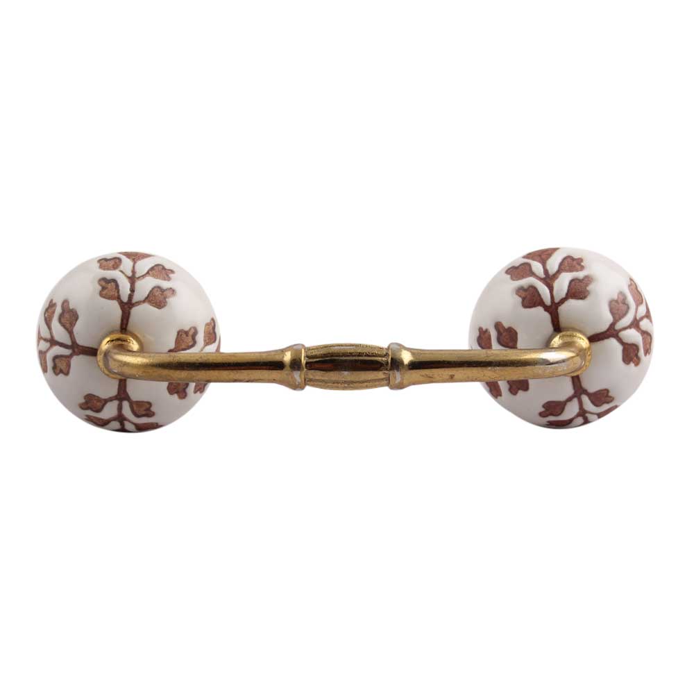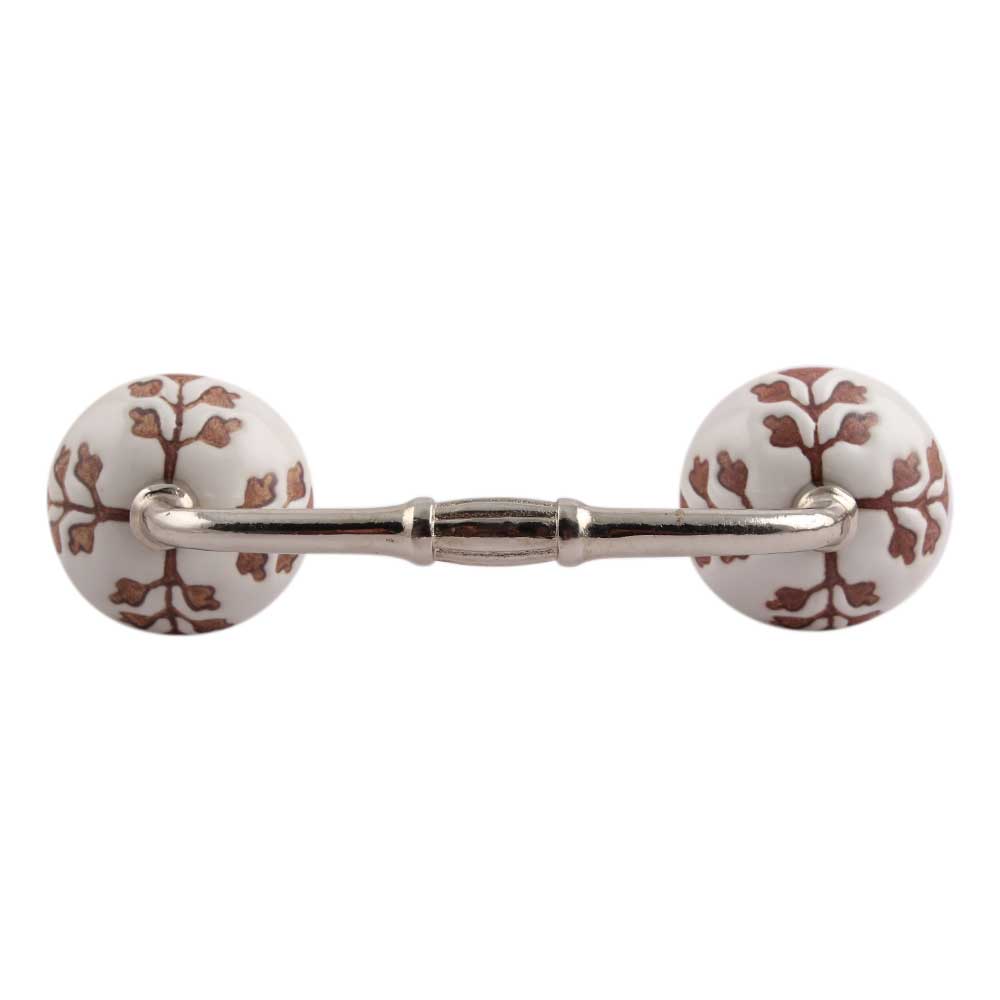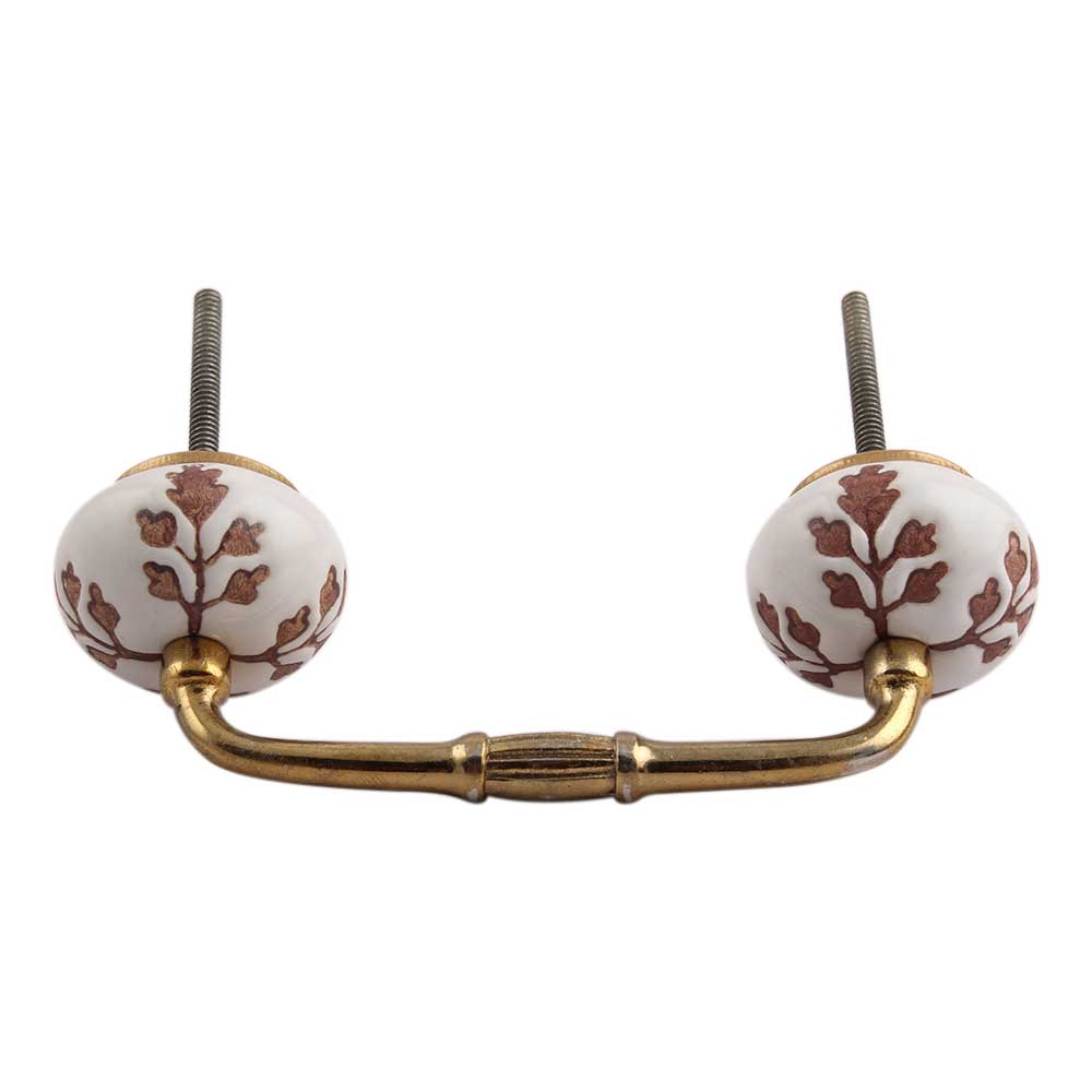Brown Leaf Cut Flower Etched Ceramic Bridge Handle. Ideal for Drawer, Dresser, Cabinet, Wardrobe, Cupboard and Almirah.