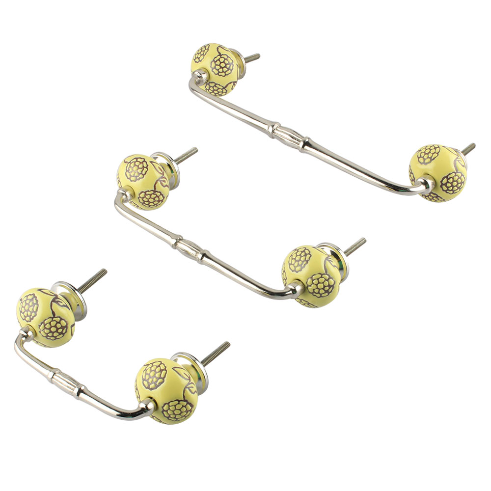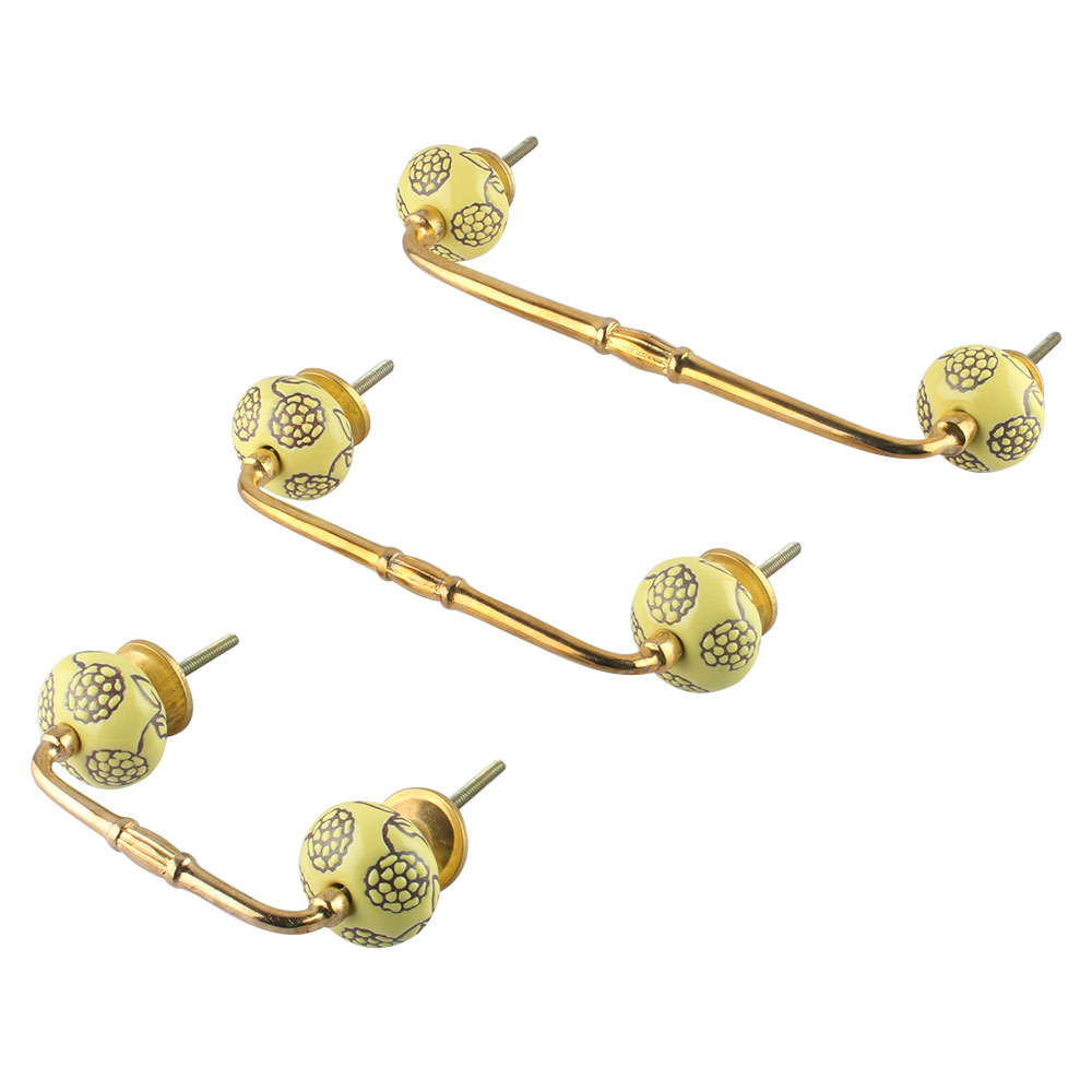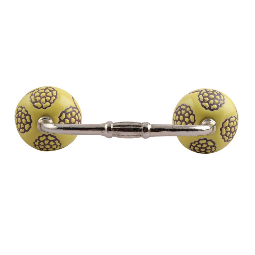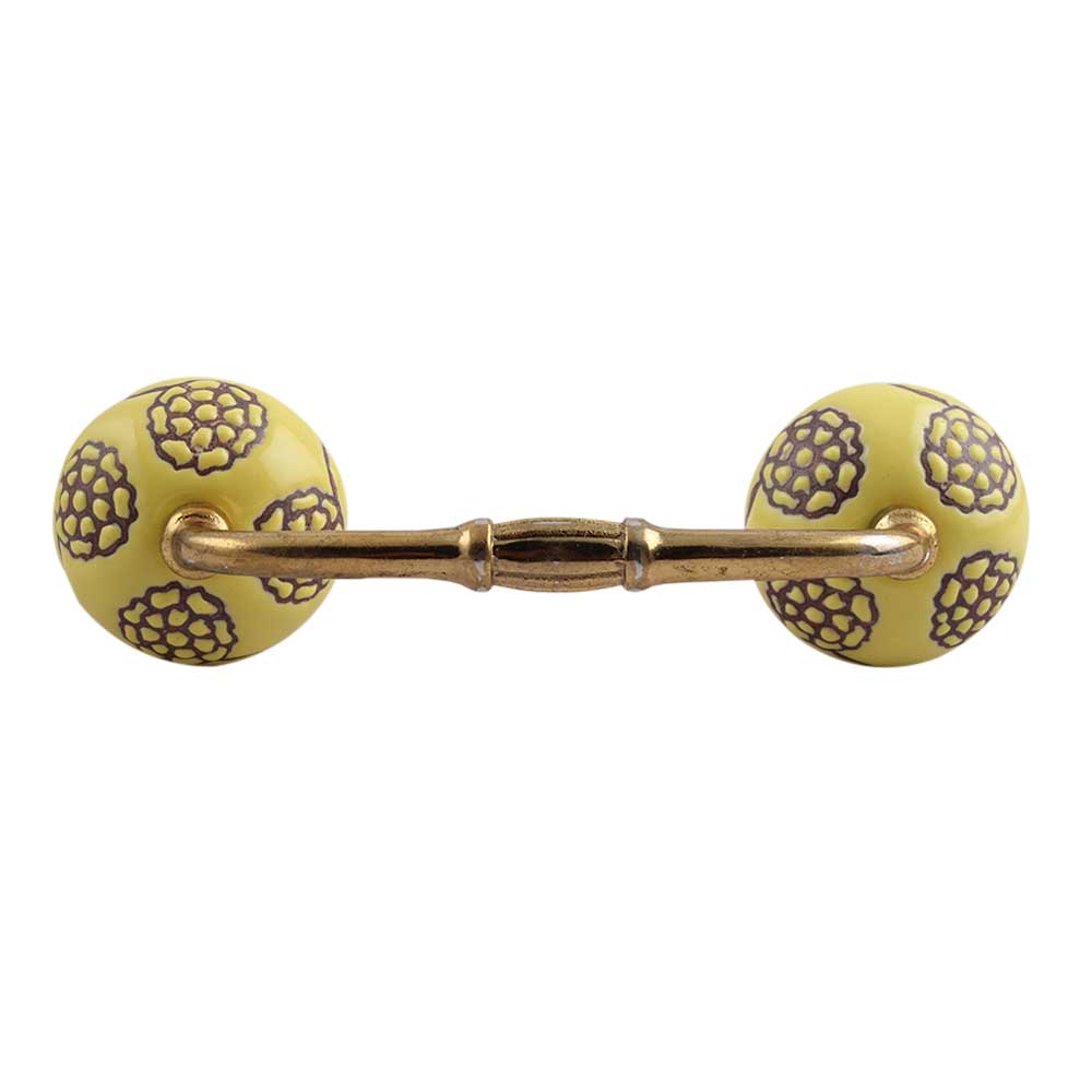 Brown Marigold Etched Ceramic Floral Bridge Handle. Ideal for Drawer, Dresser, Cabinet, Wardrobe, Cupboard and Almirah.