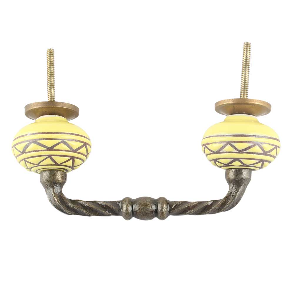 Brown Pattern Etched Ceramic Cut Bridge Handle. Ideal for Drawer, Dresser, Cabinet, Wardrobe, Cupboard and Almirah etc.