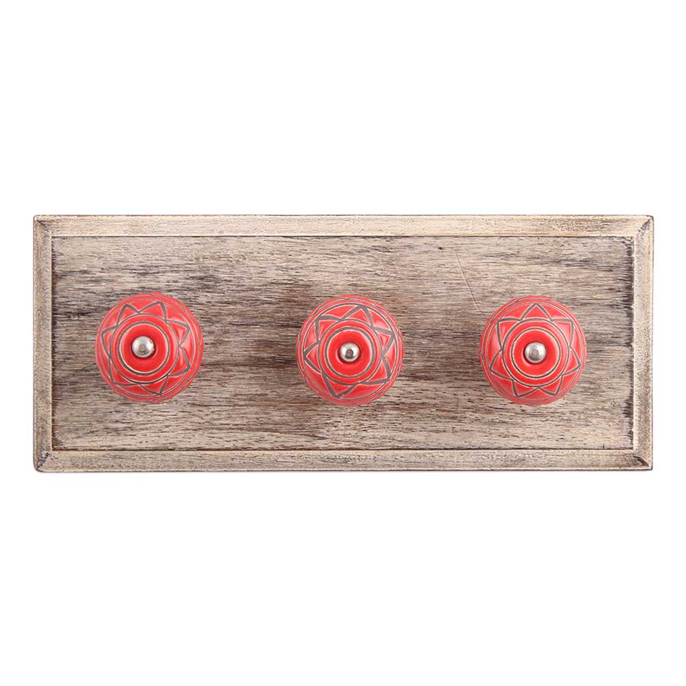Brown Pattern Etched Ceramic Wooden Hook. A Perfect Complement to the Soft Tone of the Wood are these White Traditional Hat &Amp; Coat Hook Made of Genuine Porcelain and Brass. It can be use to Hang Jewellery, Leashes, Towels, Scarves, Light Weight Sweaters, Caps Etc.