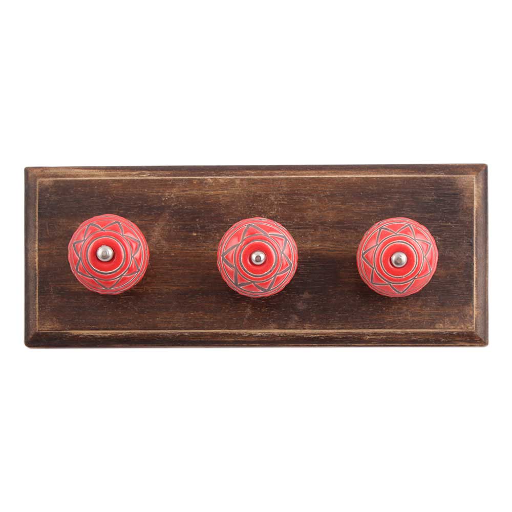 Brown Pattern Etched Ceramic Wooden Hook. A Perfect Complement to the Soft Tone of the Wood are these White Traditional Hat &Amp; Coat Hook Made of Genuine Porcelain and Brass. It can be use to Hang Jewellery, Leashes, Towels, Scarves, Light Weight Sweaters, Caps Etc.