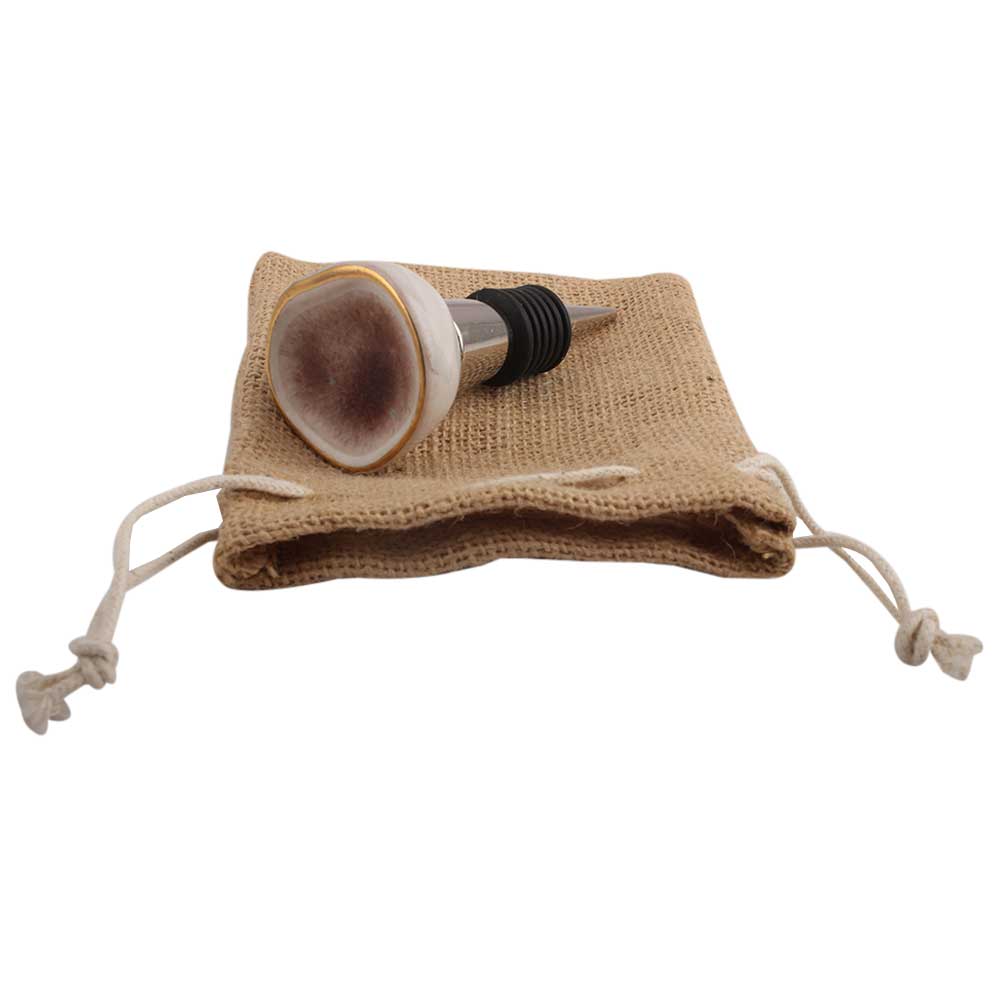 Brown Soil Ceramic Wine Stopper.zinc alloy wine bottle stopper with attractive Jute Bag Packaging.