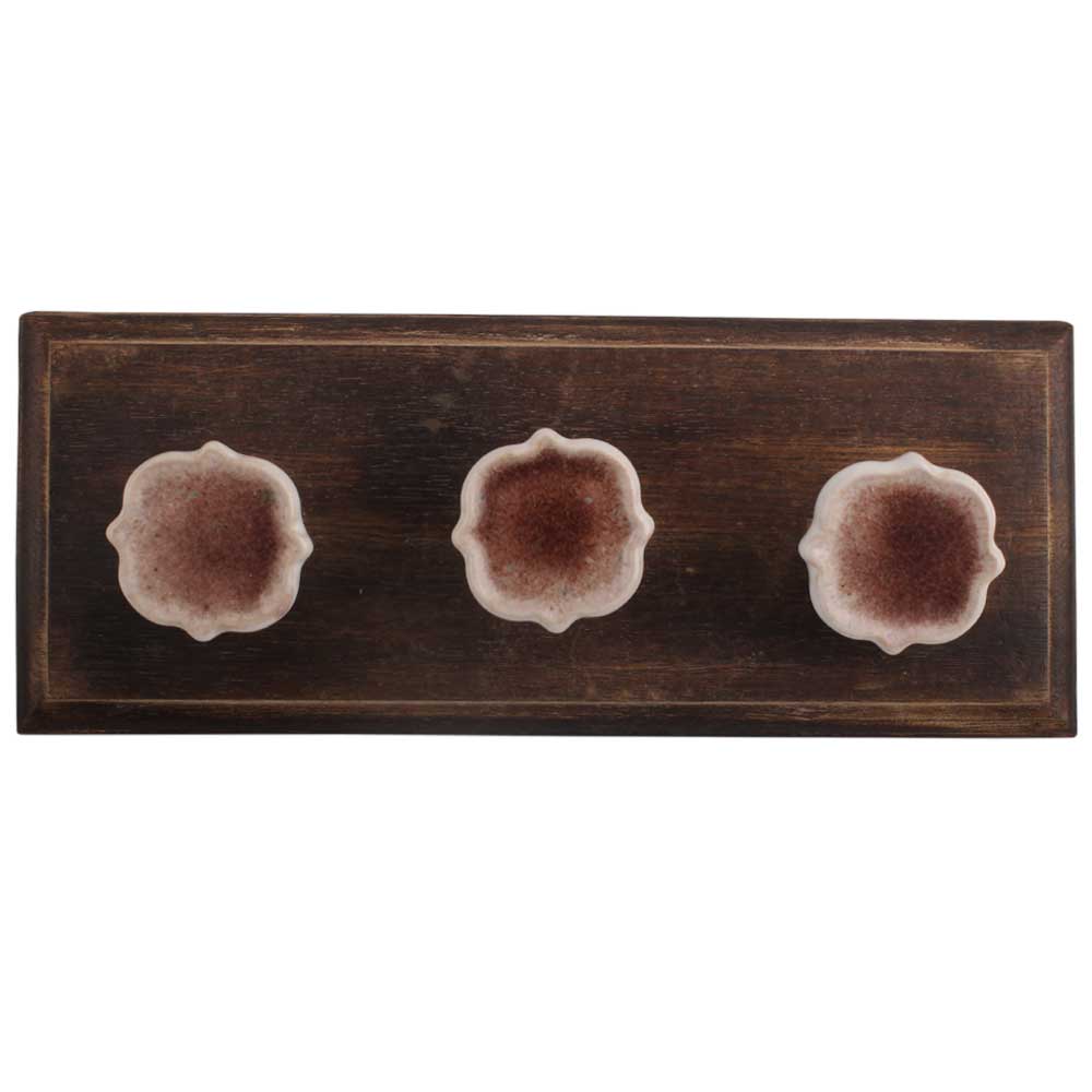 Brown Soil Ceramic Wooden Hook. A Perfect Complement to the Soft Tone of the Wood are these White Traditional Hat & Coat Hook Made of Genuine Porcelain and Brass. It can be use to Hang Jewellery, Leashes, Towels, Scarves, Light Weight Sweaters, Caps Etc.
