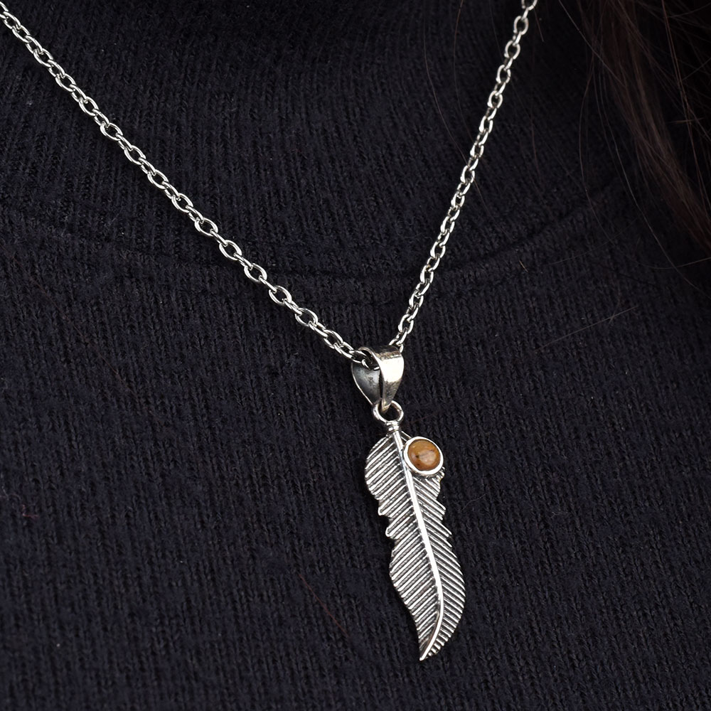 Brown Stone 92.5 Sterling Silver Feather Pendant is very elegant and suits all casual, formal and office wear. Wedding , anniversary birthday party etc. It is also the perfect gift for your family and friends on the occasion Diwali, Christmas or new year party. It can also be worn to a small family gathering.