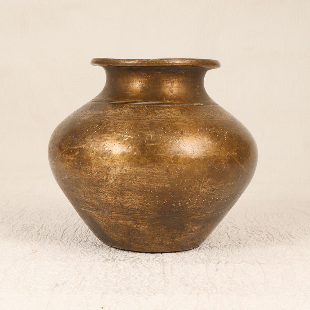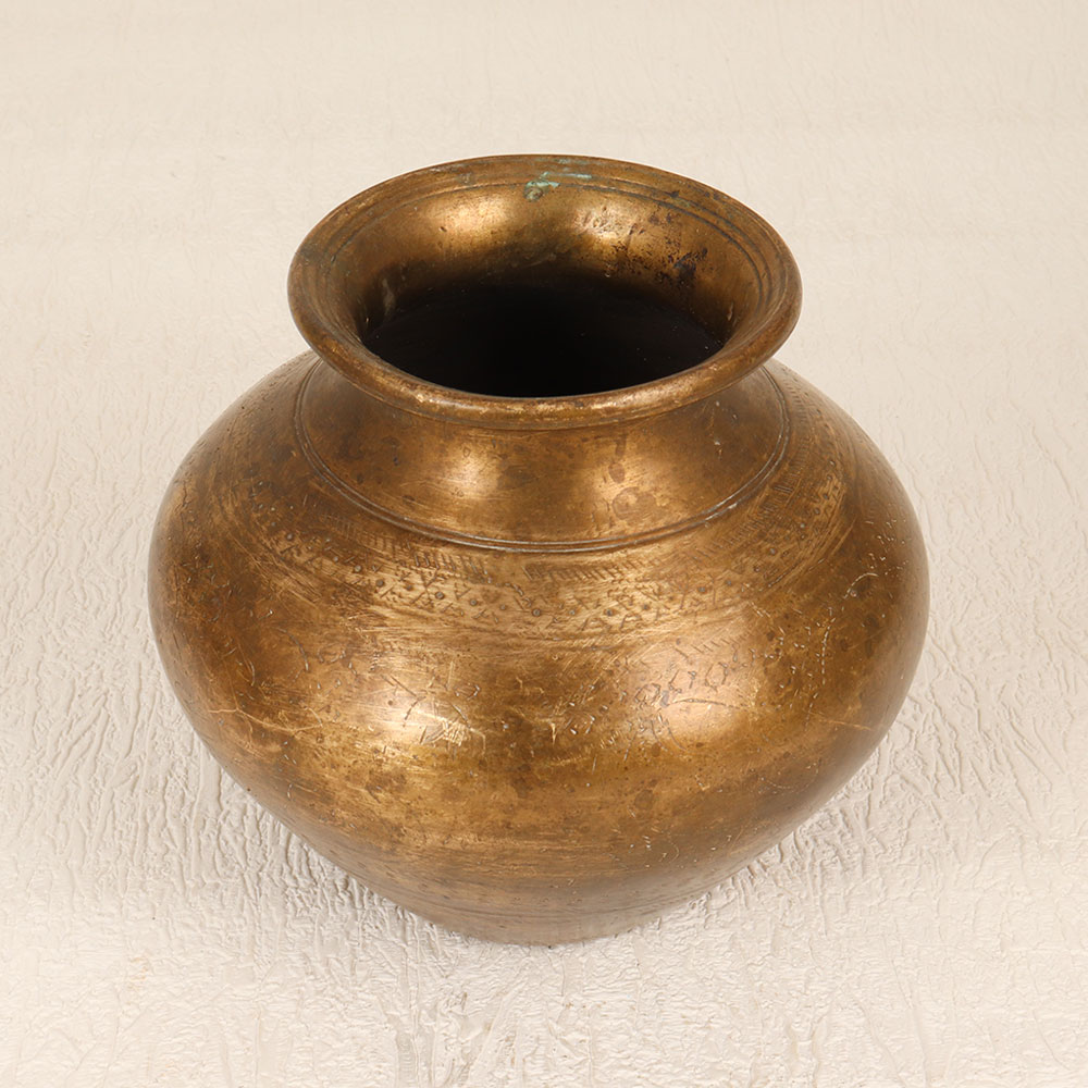 Enhance your spiritual space with this exquisite Vintage Brass Holy Water Pot which is a testament to South Indian artistry and craftsmanship. Handmade by highly talented Indian artisans, this holy water pot is a timeless piece that seamlessly blends antique aesthetics with functionality. Crafted from high-quality brass, it boasts an elegant antique brown finish, adding a touch of old-world charm to any setting. Ideal for prayer, rituals, and havans, this pot serves as a sacred vessel to hold holy water. Its versatile design allows it to grace the ambiance of homes, offices, restaurants, hotels, or cafes, enhancing the atmosphere of prayer rooms. Beyond its religious purpose, this pot can double as an indoor flower pot, infusing your space with a unique and vintage allure. A true collector's item, this vintage piece is a thoughtful gift for your family, friends or relatives on special, festive, or auspicious occasions. Embrace tradition, craftsmanship, and spirituality with this captivating Vintage Brass Holy Water Pot.