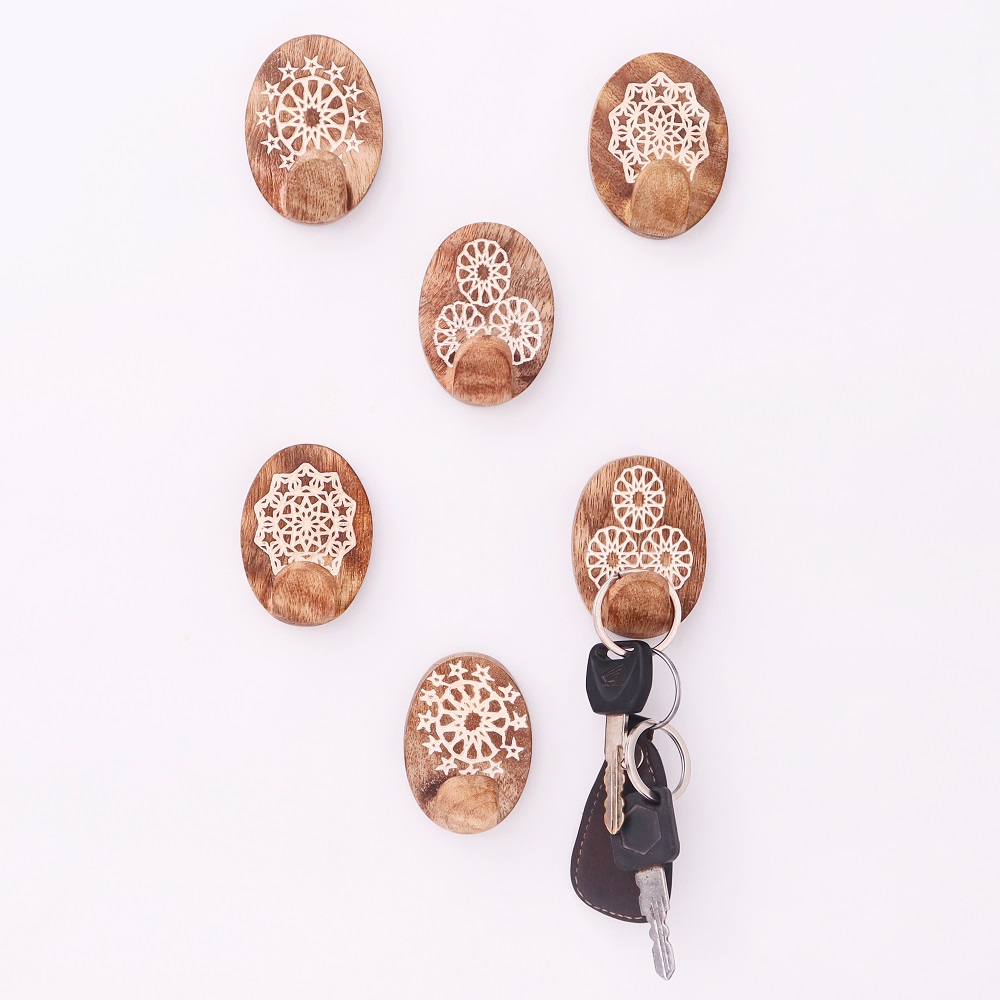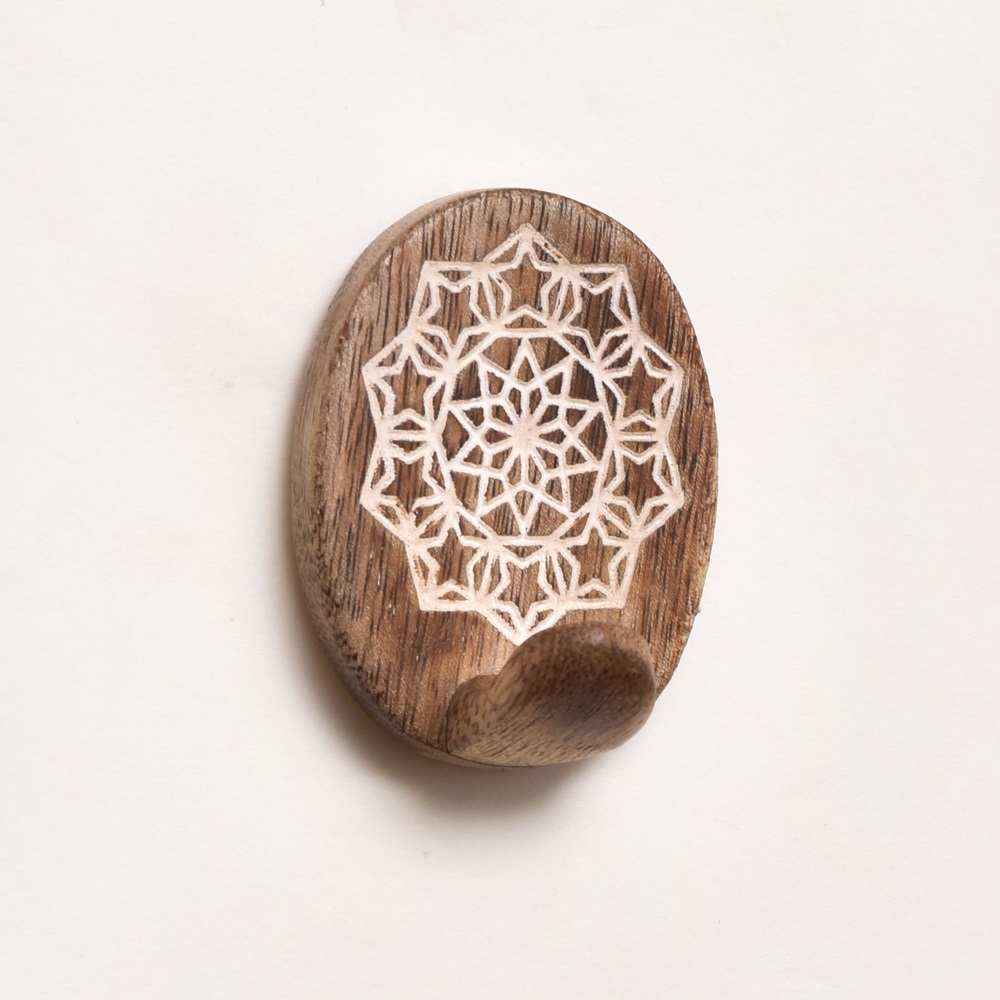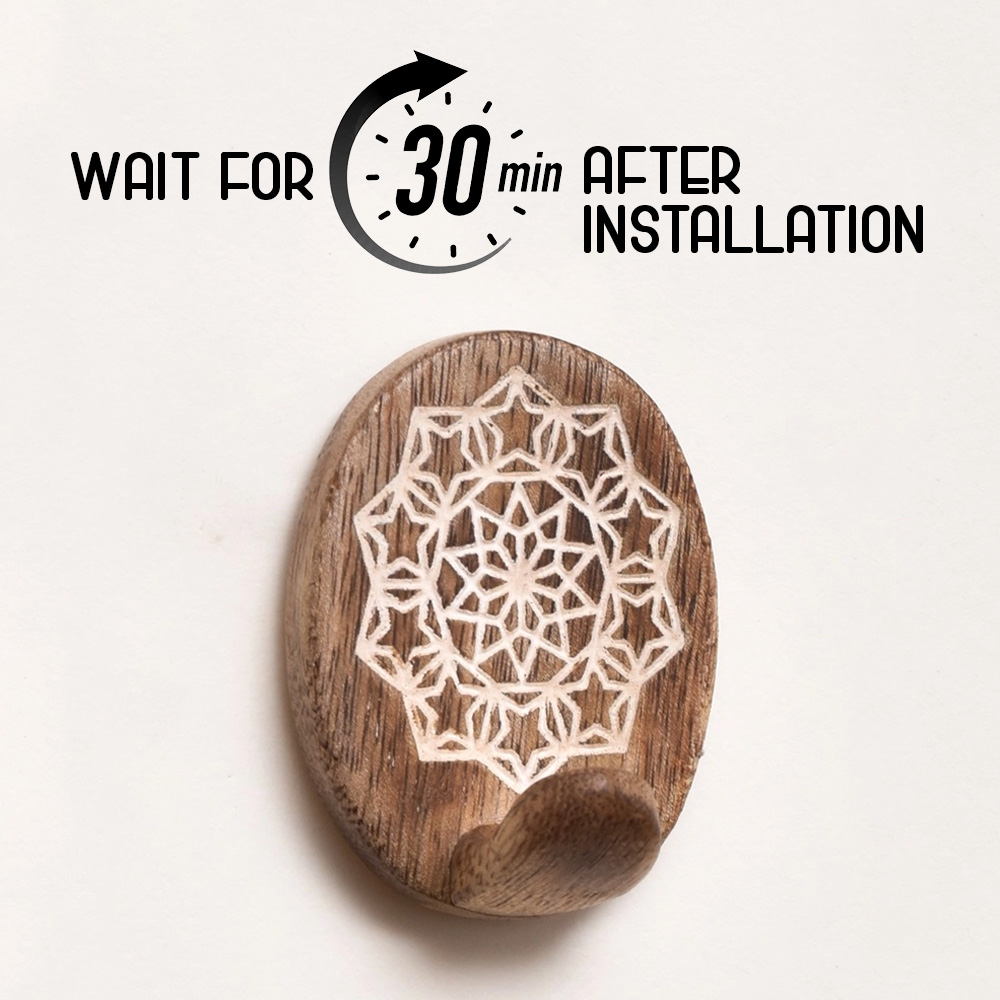 Handmade adhesive wooden wall hook is perfect for hanging towels, clothes, hats, bags, keys, scarves and jackets. It's very easy to mount on a wall or door.
