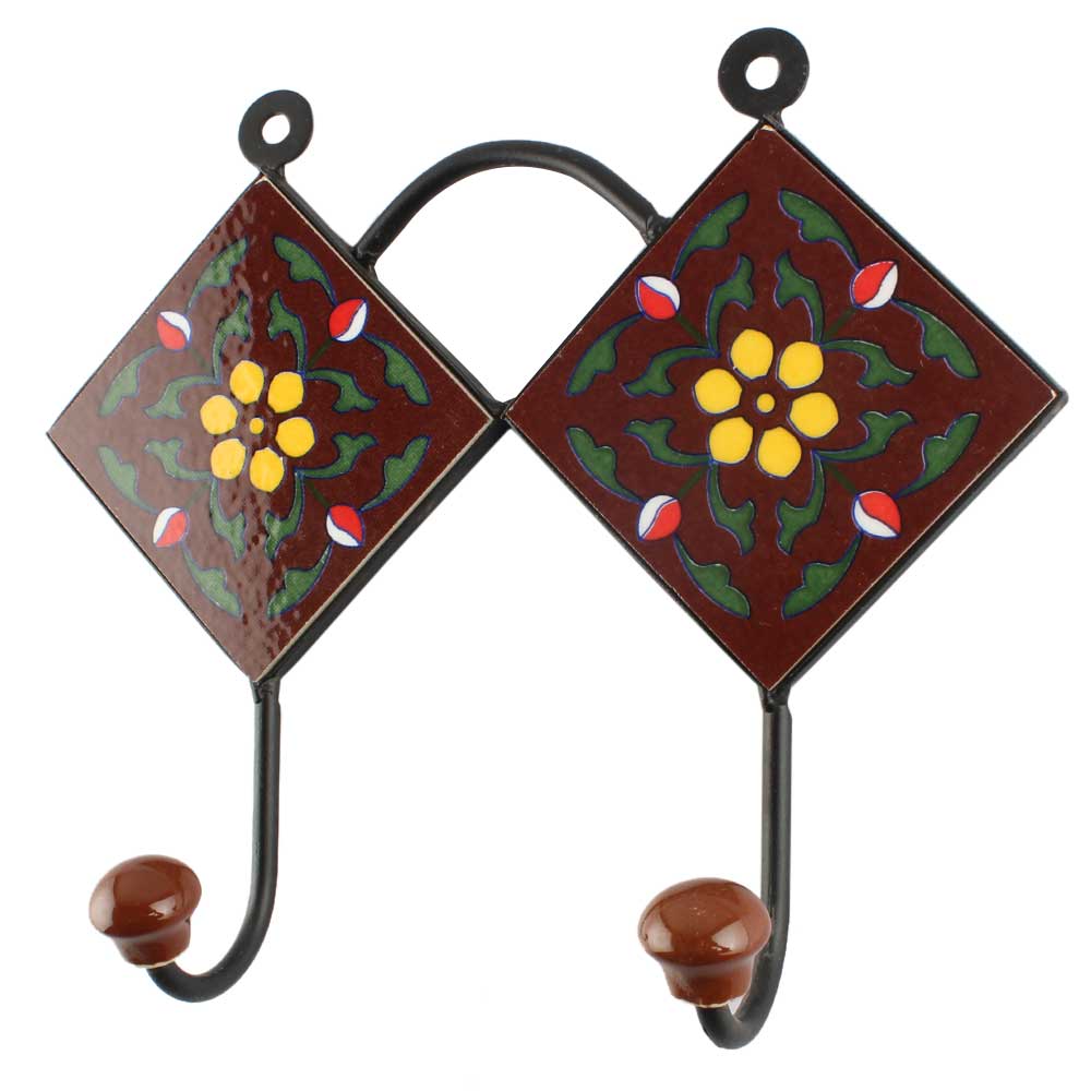 Add quiet charm and smart storage to your walls with the Brown with Yellow Tiny Flower Ceramic Tile Hook. This piece features a hand-painted ceramic tile with delicate yellow floral accents against a warm brown backdrop, paired with a strong metal hook. The handcrafted detail and vintage tones make it both eye-catching and useful. Designed to hold daily essentials while adding a subtle decorative touch, it's perfect for bringing both function and beauty into small spaces.