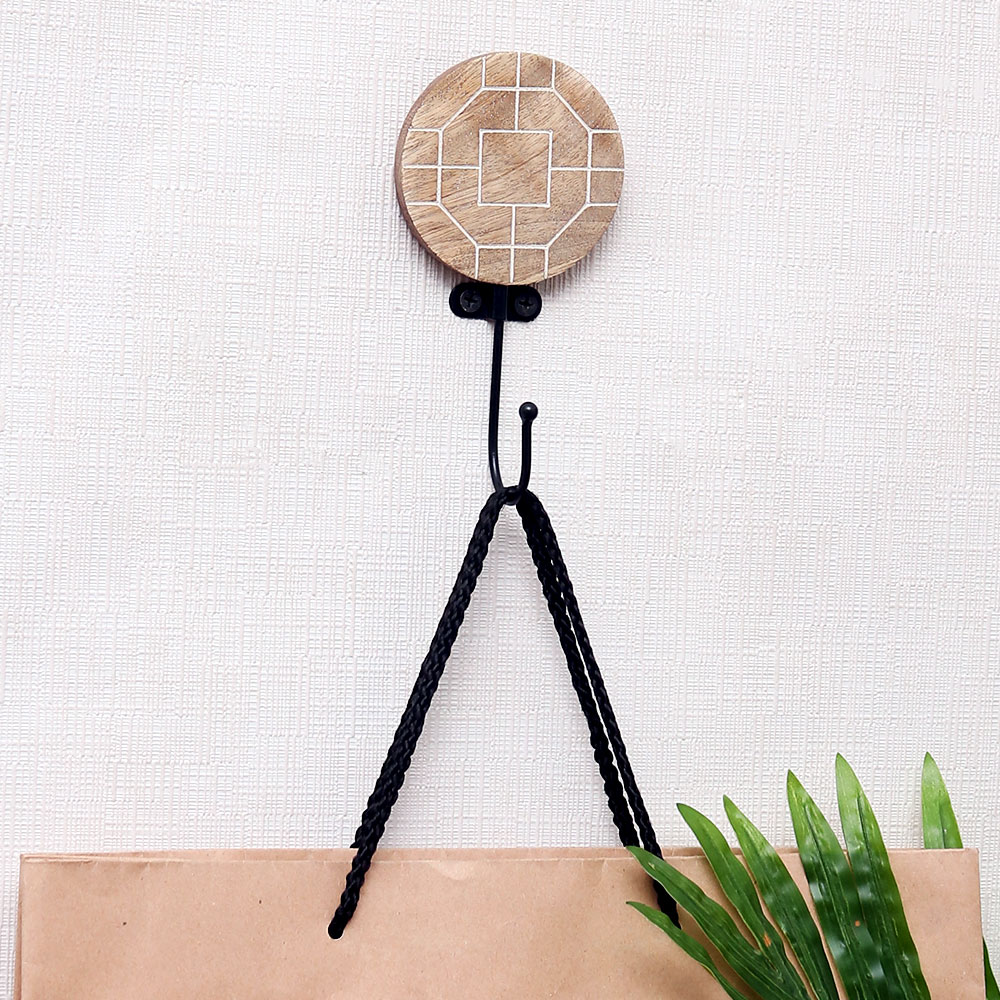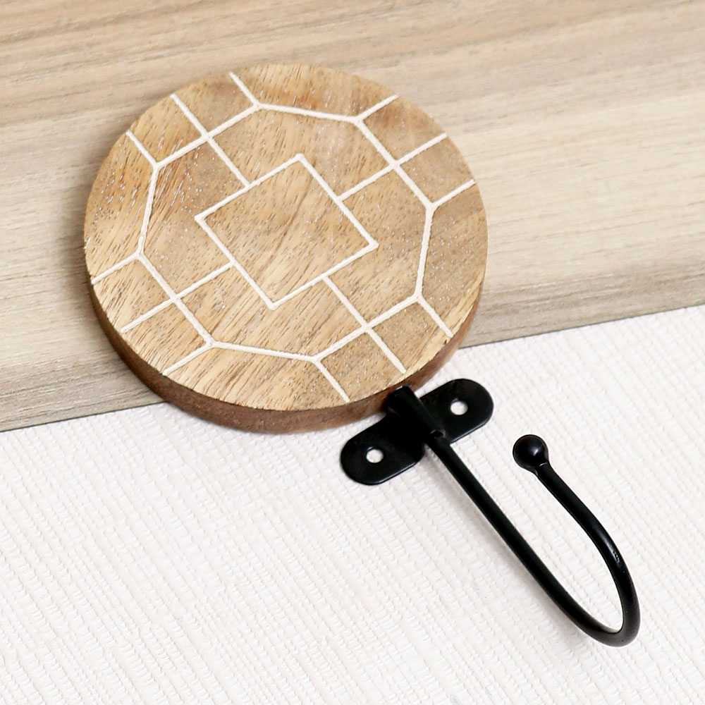 The Brown Wooden Geometric Pattern Hook is where contemporary design meets timeless craftsmanship. Skillfully handcrafted by Indian artisans, this wall hook features a sleek geometric pattern carved into solid wood, offering both visual interest and functional elegance. The warm brown tone and minimalistic lines add depth and sophistication to any wall, making it a versatile piece for modern homes. Whether used solo or in a set, this hook adds structure and style to everyday organization.