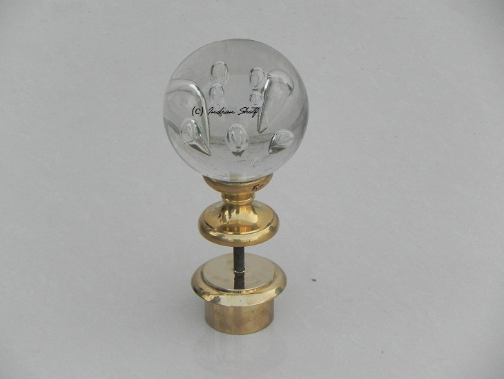 The piece stands 9" tall and the diameter of the orb is approximately 4"