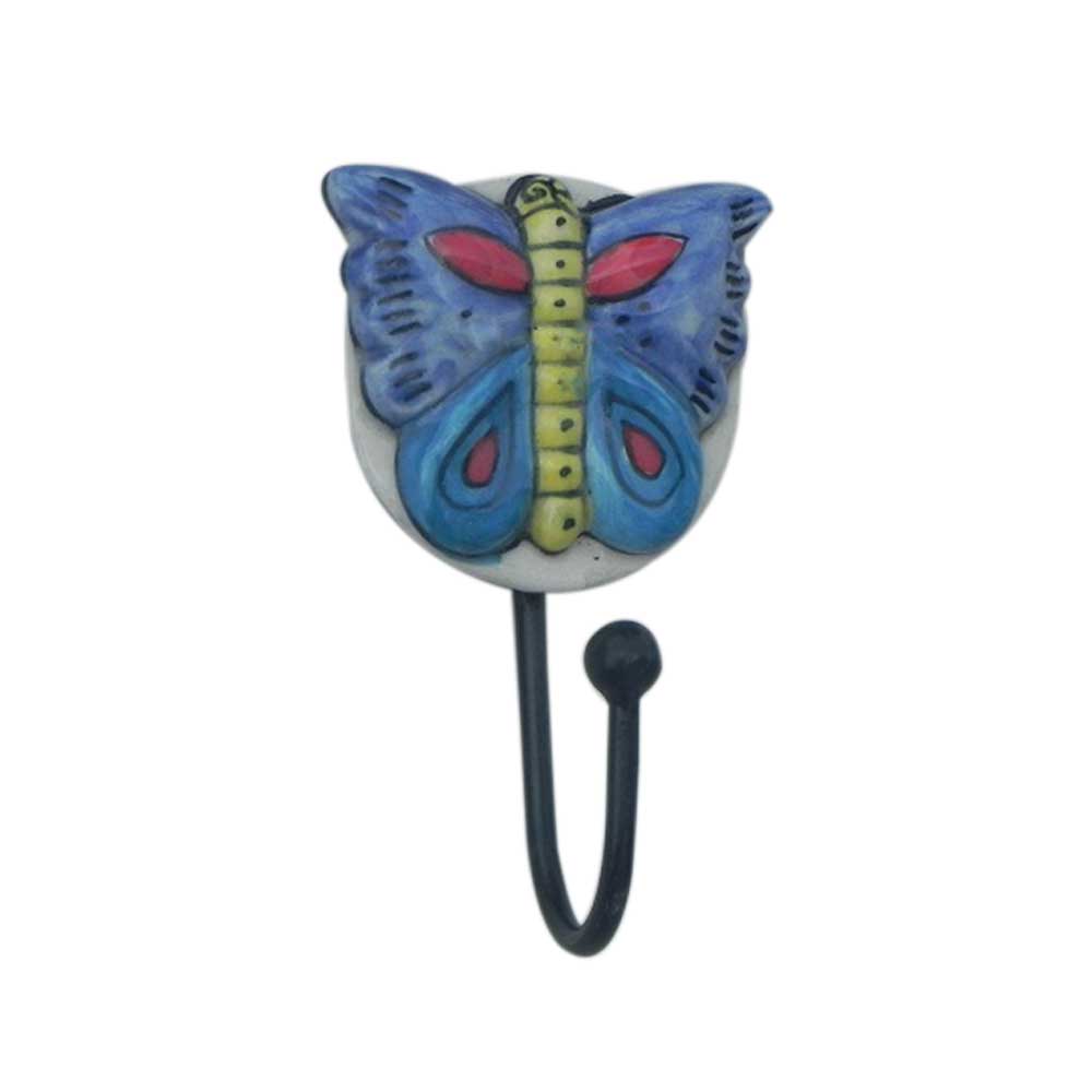 Butterfly Ceramic Hook. When Put on Wall or Cabinet It is An Art in Itself. This Black Powder Coated Iron Hook is Strong Enough to Hold Your Cloths, Keys, Tea Cups, Coffee Mugs, Hand Towels Etc. It Will Give A Colorful and Artistic Look to Your Kid's Room.