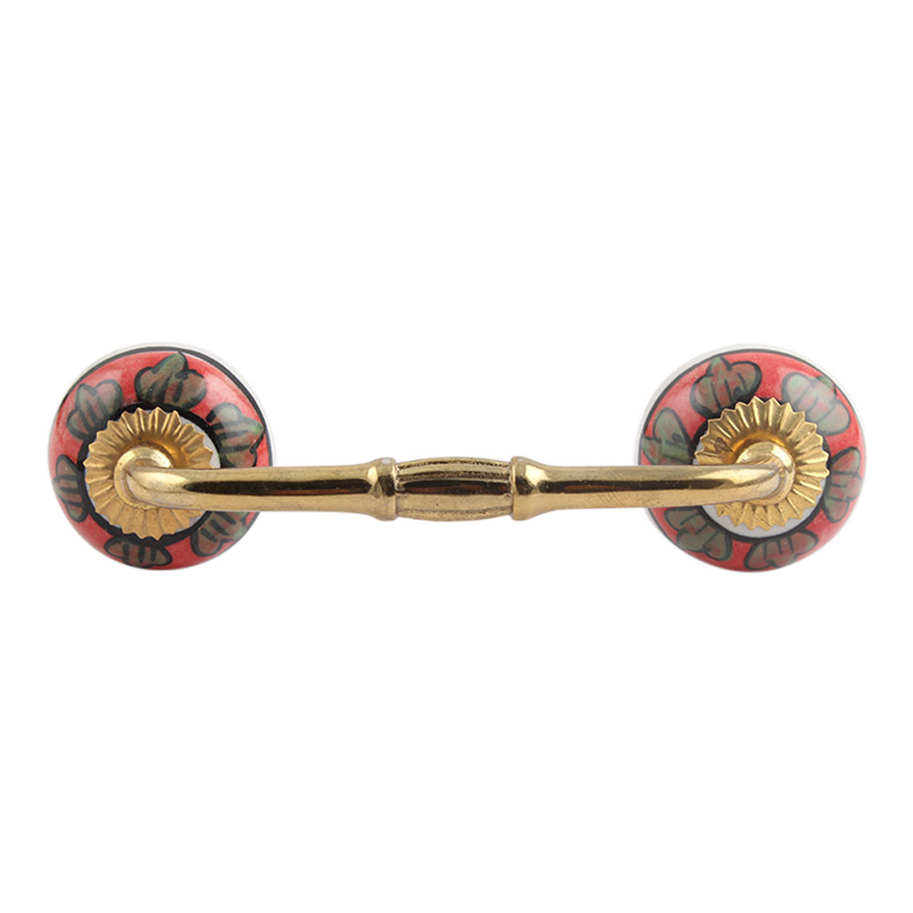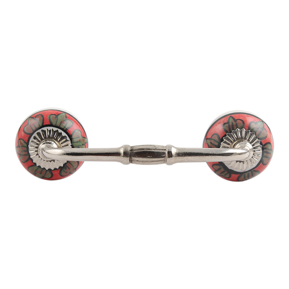 Caladium Bicolor Ceramic Bridge Handle. Ideal for Drawer, Dresser, Cabinet, Wardrobe, Cupboard and Almirah.