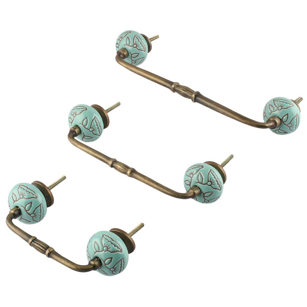 Calla Lily Brown Etched Ceramic Bridge Handle. Ideal for Drawer, Dresser, Cabinet, Wardrobe, Cupboard and Almirah.