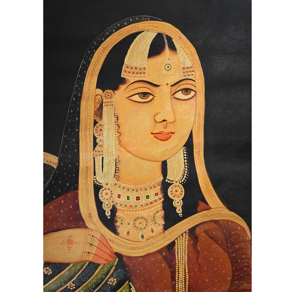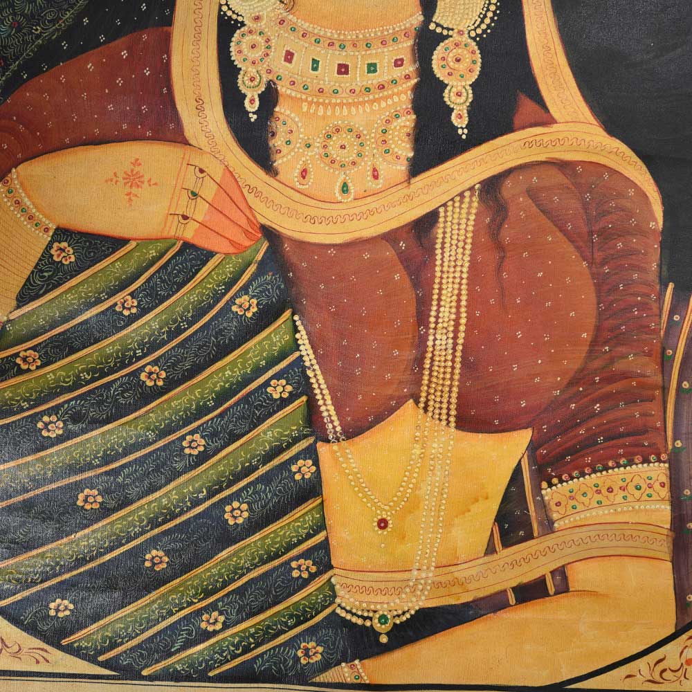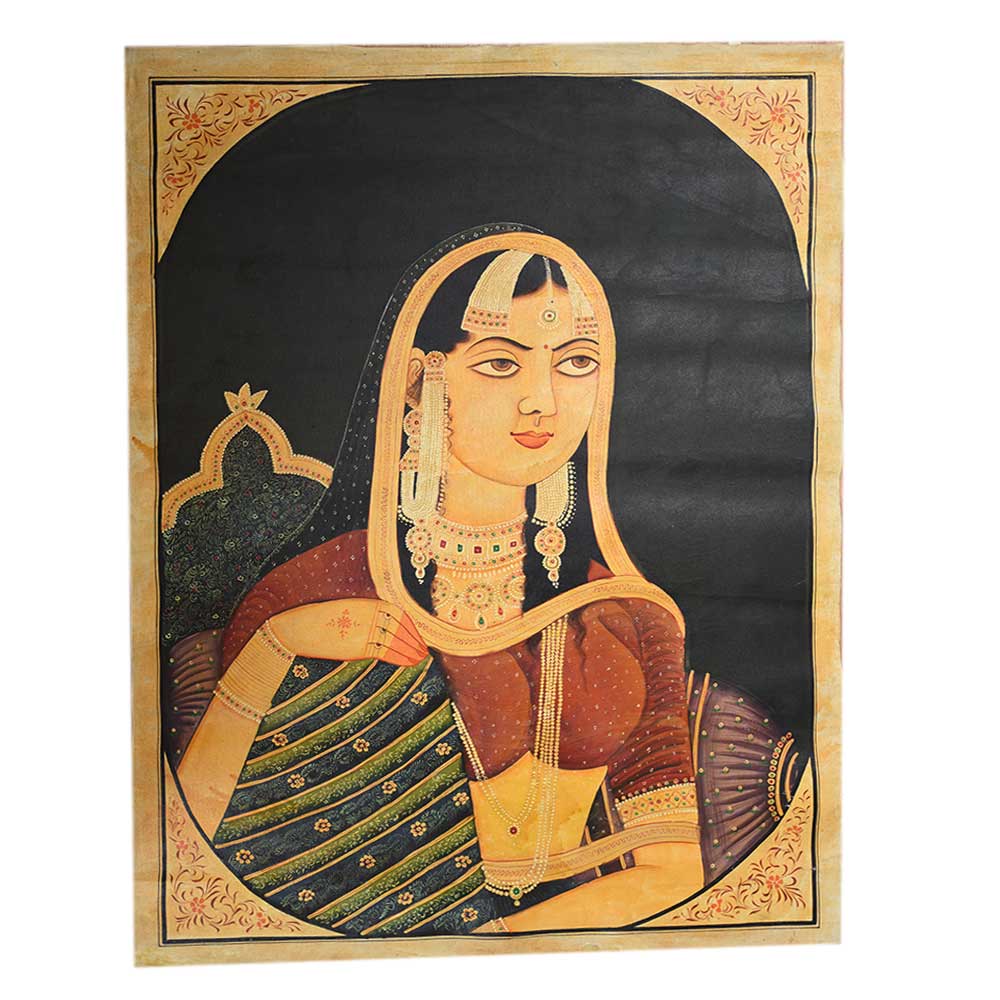 This rare Canvas Mughal painting of Indian queen empress will turn your collection or decor into something truly magnificent