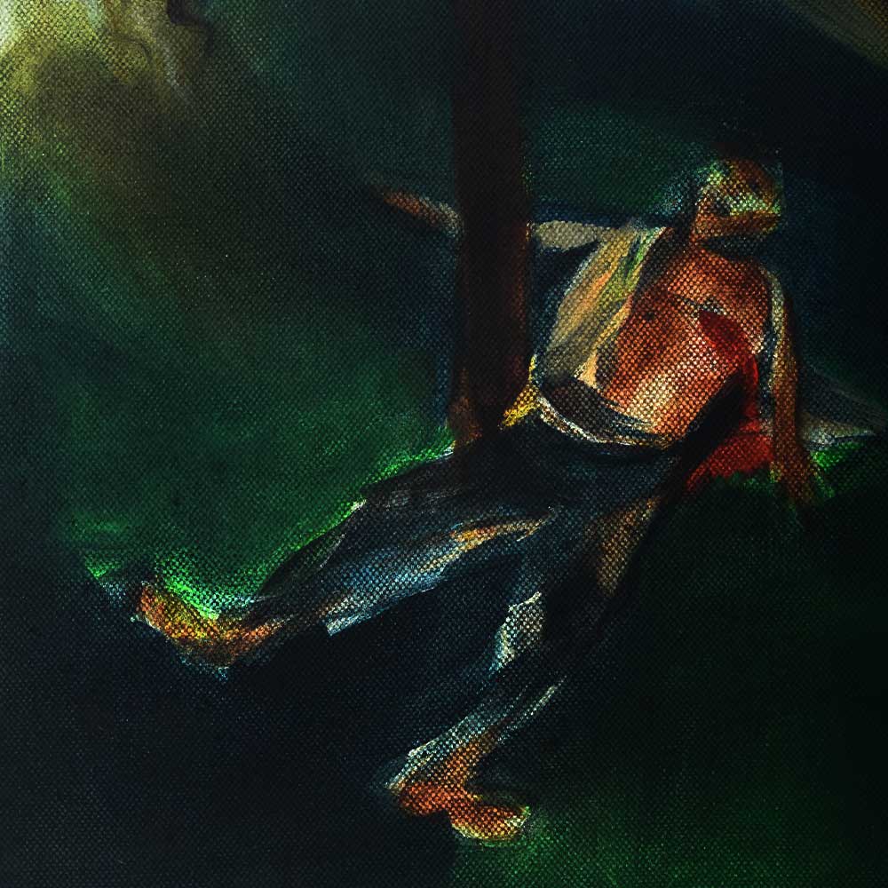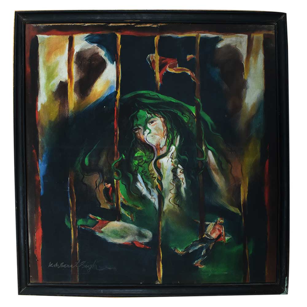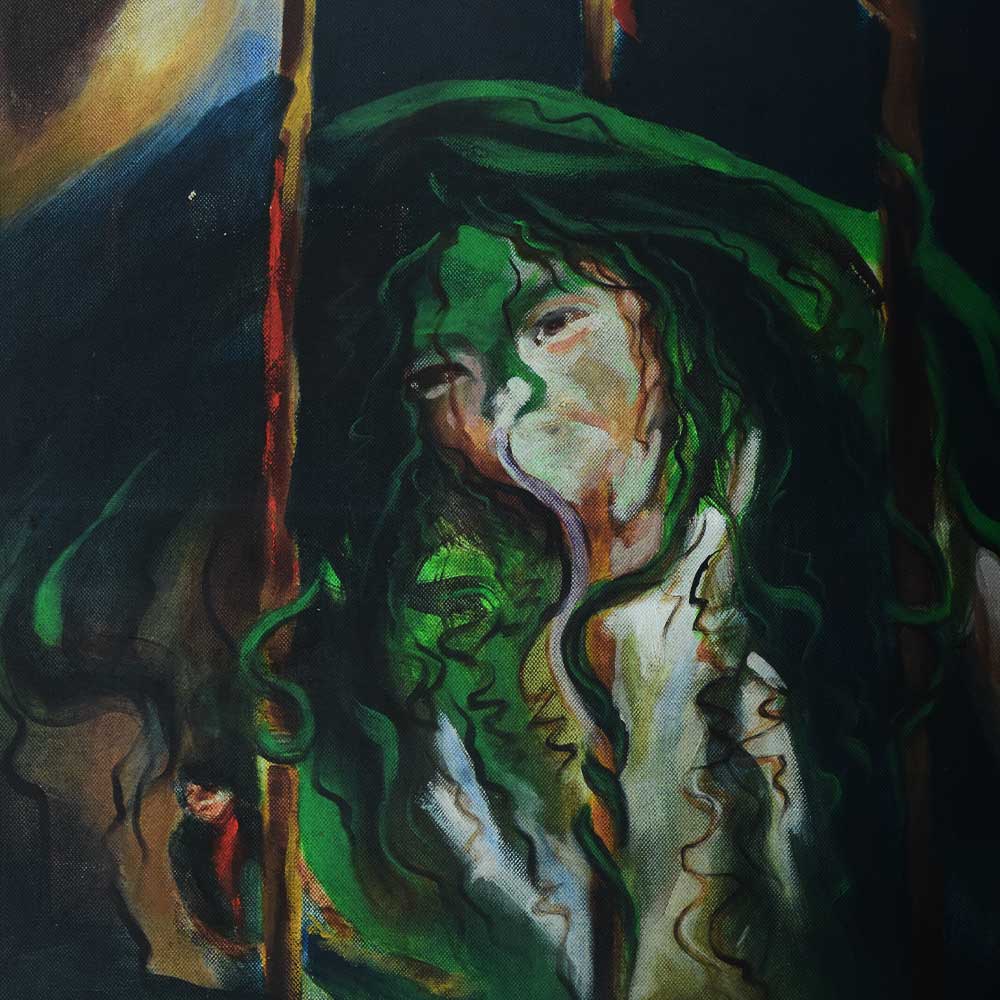 The painting's naive and adorable girl is enjoying an abstract life. She is also a sweet, sweet girl who lives a mystery existence and is imprisoned in a dark room. The utilisation of stunning vibrant colours with a creative concept is the major element.