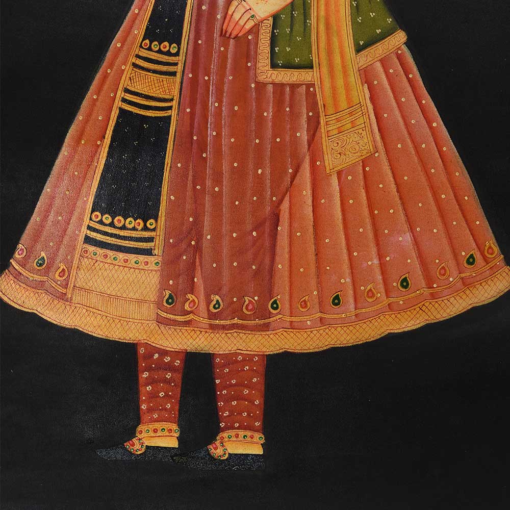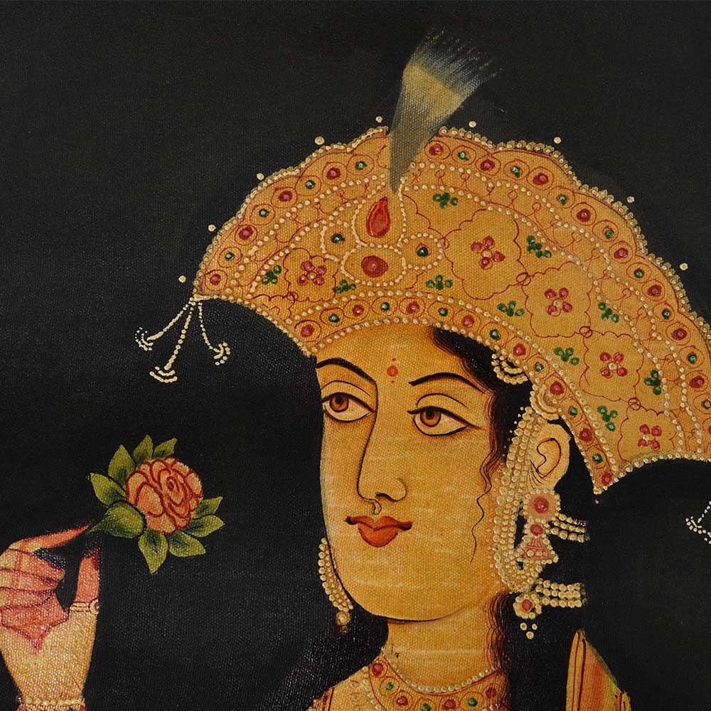 Traditional Canvas painting or sketch of Mughal princess smelling a rose an be used as wall hanging art for home wall decor, kitchen wall décor and office wall decor.