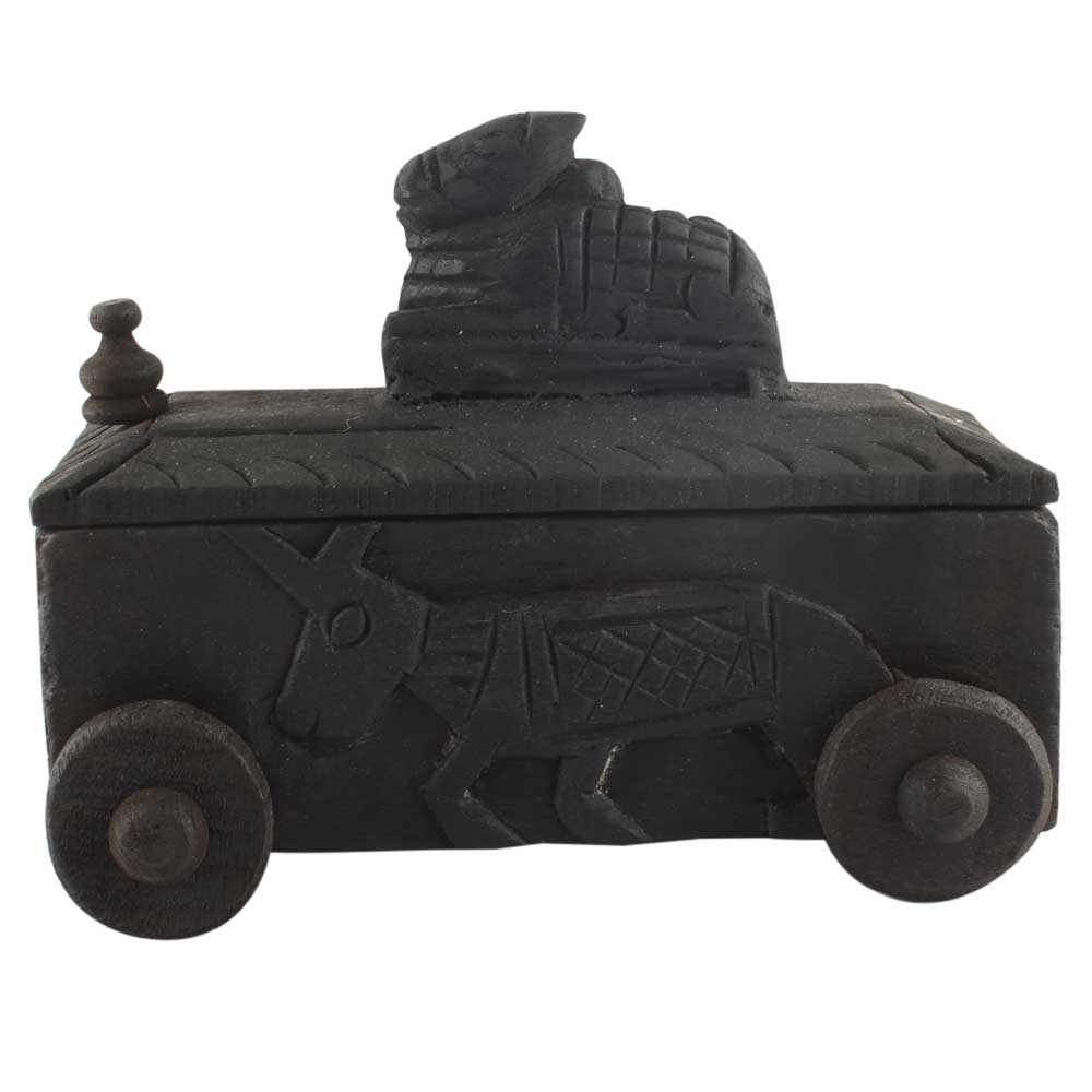 Carved Decorative Nandi Wooden Box. Ceramic Drawers in Wooden Frame. The Spice Boxes are designed with different patterns. These boxes are made using natural wood which does not harm the purity of spices.