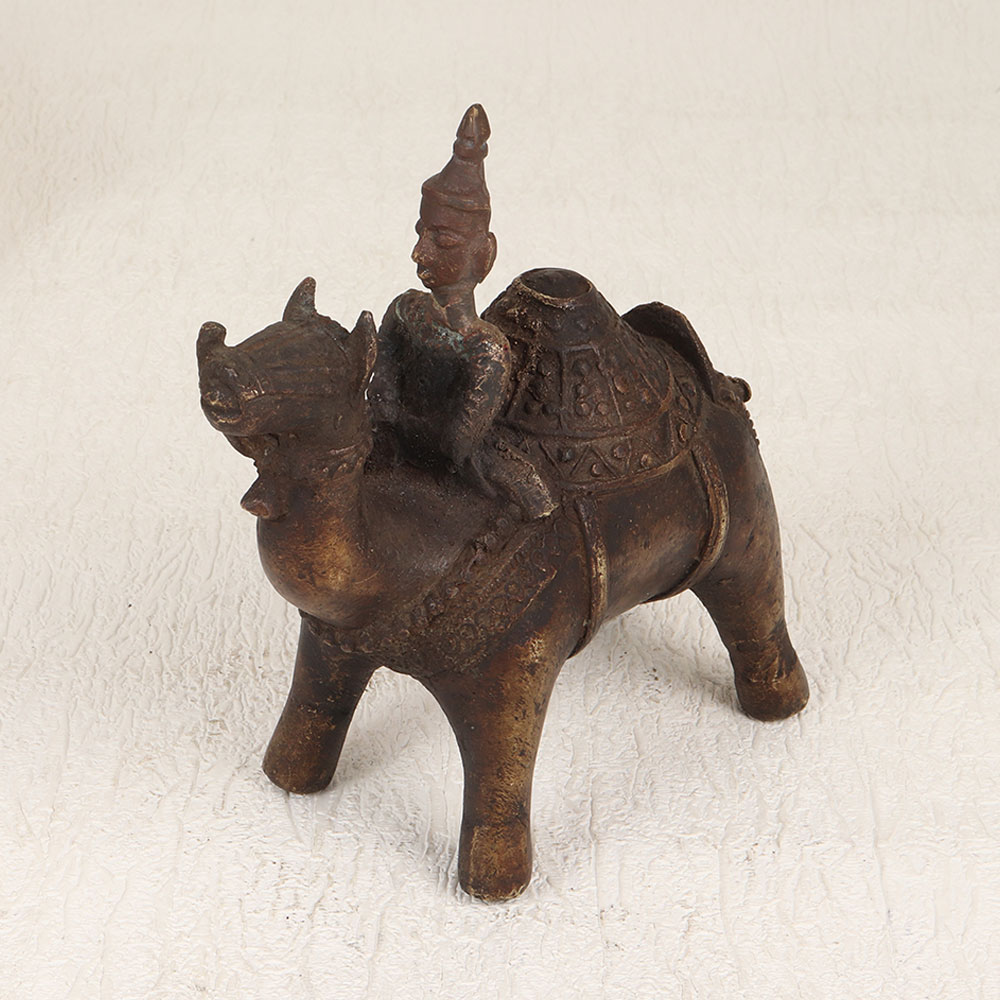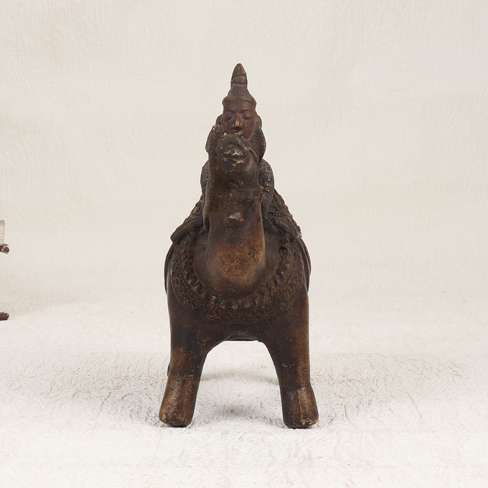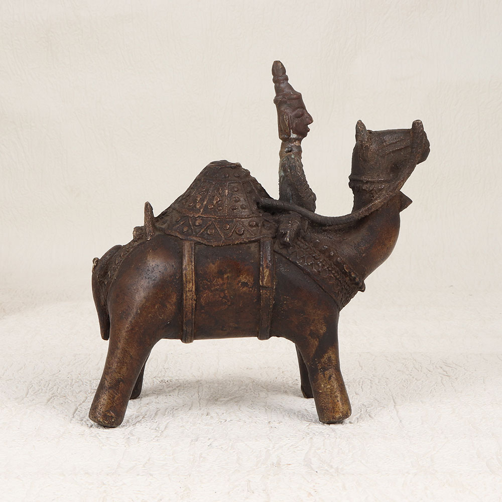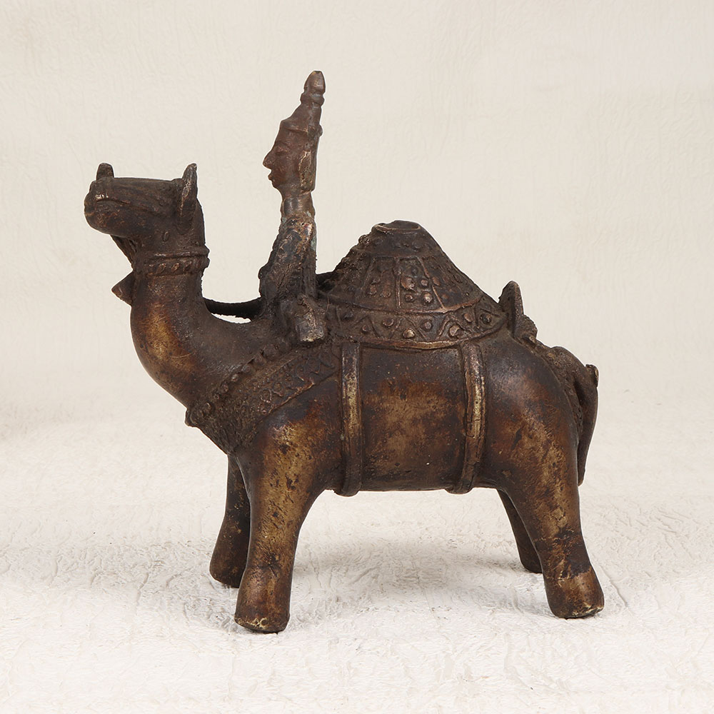 Enhance your decor with the timeless charm of our Vintage Brass Camel with Rider Statue. Handcrafted by talented artisans from Central India, this exquisite piece showcases the rich heritage of craftsmanship. The statue is meticulously crafted from high-quality brass, ensuring durability and an authentic aesthetic. The antique brown finish adds a touch of nostalgia, evoking the allure of bygone eras. With its intricate detailing and artisanal flair, this statue serves as a striking focal point for any space. Whether adorning your home, office, restaurant, hotel, or cafe, its versatile design seamlessly blends with various settings. This piece is not just a decorative accent but a valuable addition to your vintage collection, embodying the elegance of traditional Indian artistry. Celebrate special occasions by gifting this masterpiece to your family, friends or relatives, offering a unique and thoughtful present that symbolizes craftsmanship, history, and cultural richness. Make every moment special with this Vintage Brass Camel with Rider Statue, a testament to the enduring beauty of handmade artistry.