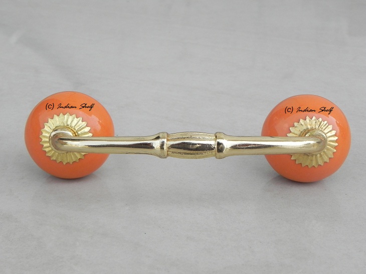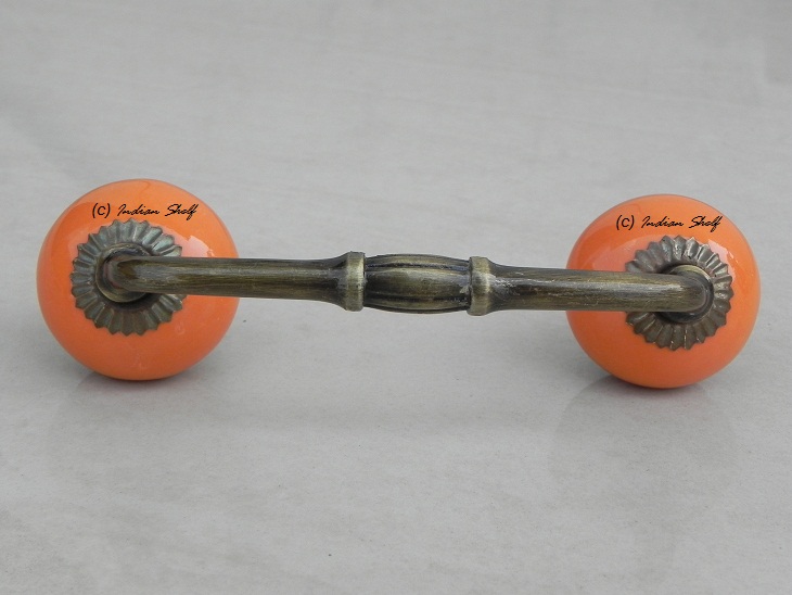 Orange Ceramic Bridge Handle. Ideal for Drawer, Dresser, Cabinet, Wardrobe, Cupboard and Almirah.
