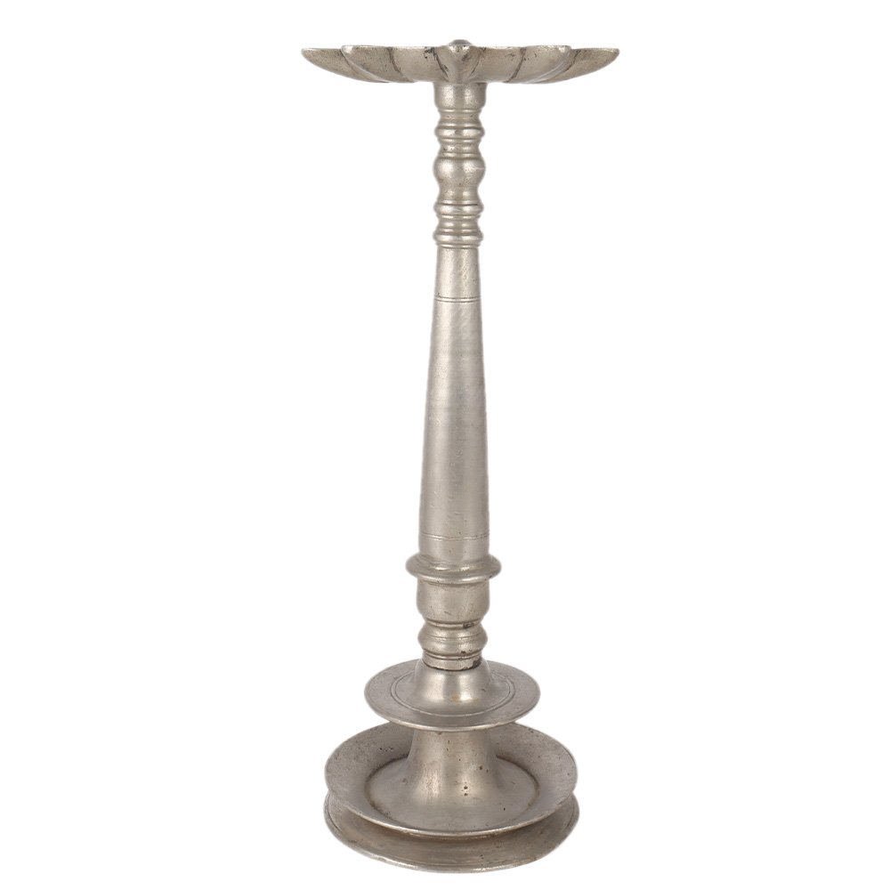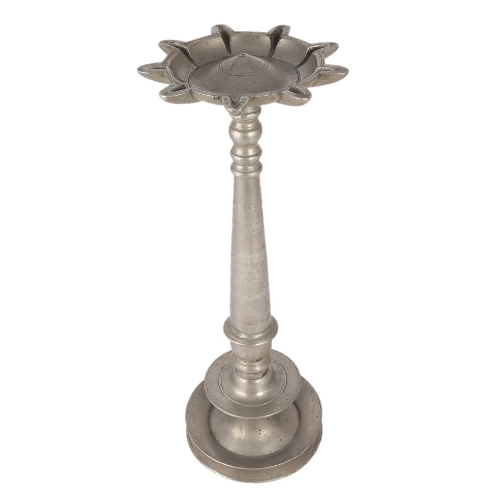 This ceremonial Kuthu Vilakku brass oil Lamp was crafted using the lost wax process. This long oil lamp enhances the spiritual flavor of your decor. Cotton wick, vegetable oil, mustard oil, or desi ghee is used to ignite this oil lamp. This lamp graces temples, mandaps, and residences.
