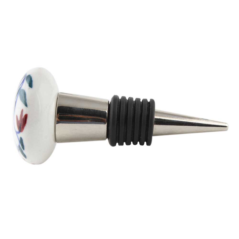 Cherry Floral Flat Ceramic Wine Bottle Stopper. Zinc Alloy Wine Bottle Stopper with Attractive Jute Bag Packaging.