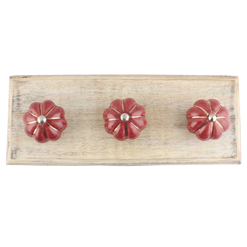 Cherry Golden Line Ceramic Melon Wooden Hooks. A Perfect Complement to the Soft Tone of the Wood are these White Traditional Hat and Coat Hook Made of Genuine Porcelain and Brass. It can be used to Hang Jewelry, Leashes, Towels, Scarves, Light Weight Sweaters, Caps etc.
