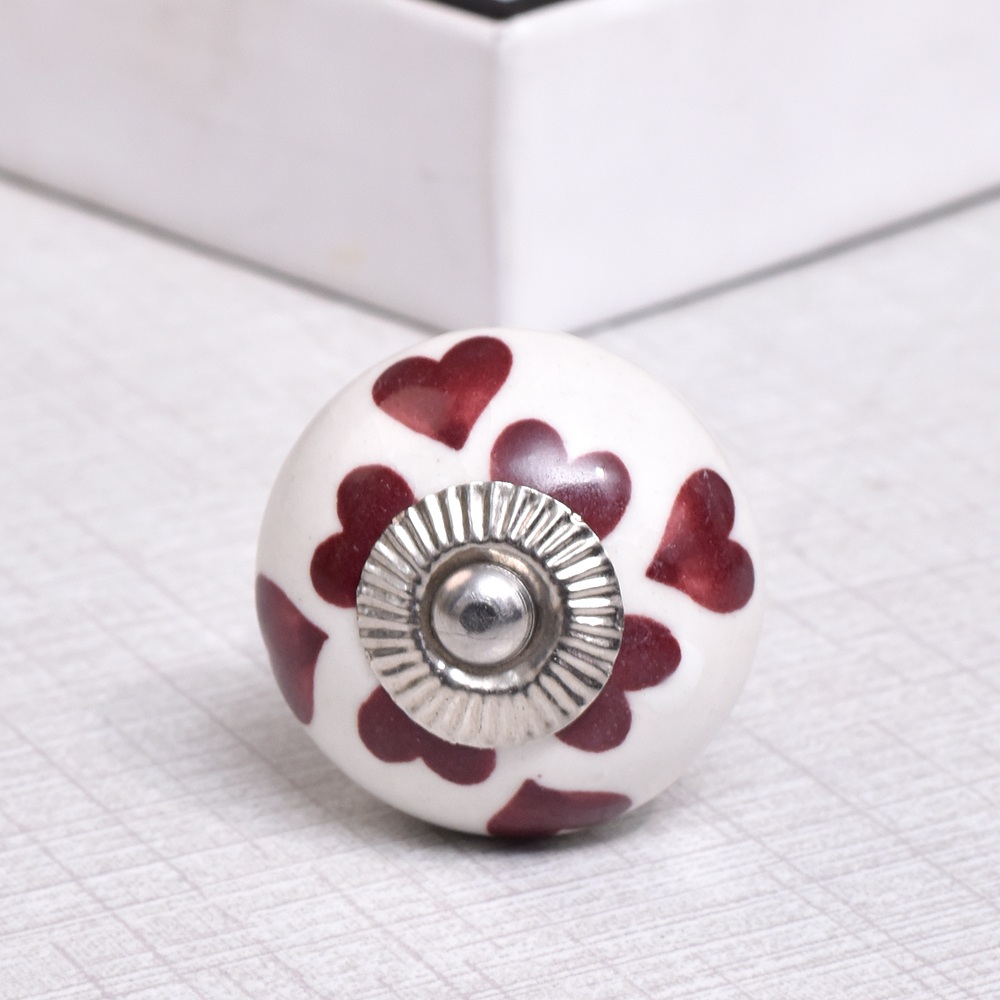 The playful nature of the Cherry Heart Ceramic Knob makes it an ideal addition to eclectic interiors. Its vibrant color and heart-shaped design provide a lovely contrast to a mix of patterns, textures, and styles. Whether it's part of a boho chic, vintage-inspired, or whimsical interior, this knob adds a cheerful, lighthearted touch to the furniture, making the entire room feel more welcoming and fun.
