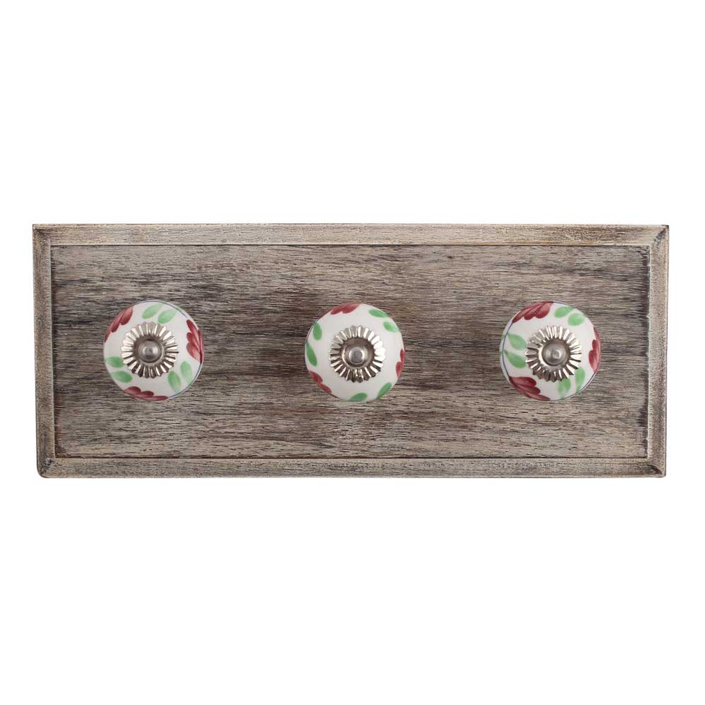 Cherry Lily Ceramic Wooden Hook. A Perfect Complement to the Soft Tone of the Wood are these White Traditional Hat & Coat Hook Made of Genuine Porcelain and Brass. It can be use to Hang Jewellery, Leashes, Towels, Scarves, Light Weight Sweaters, Caps Etc.