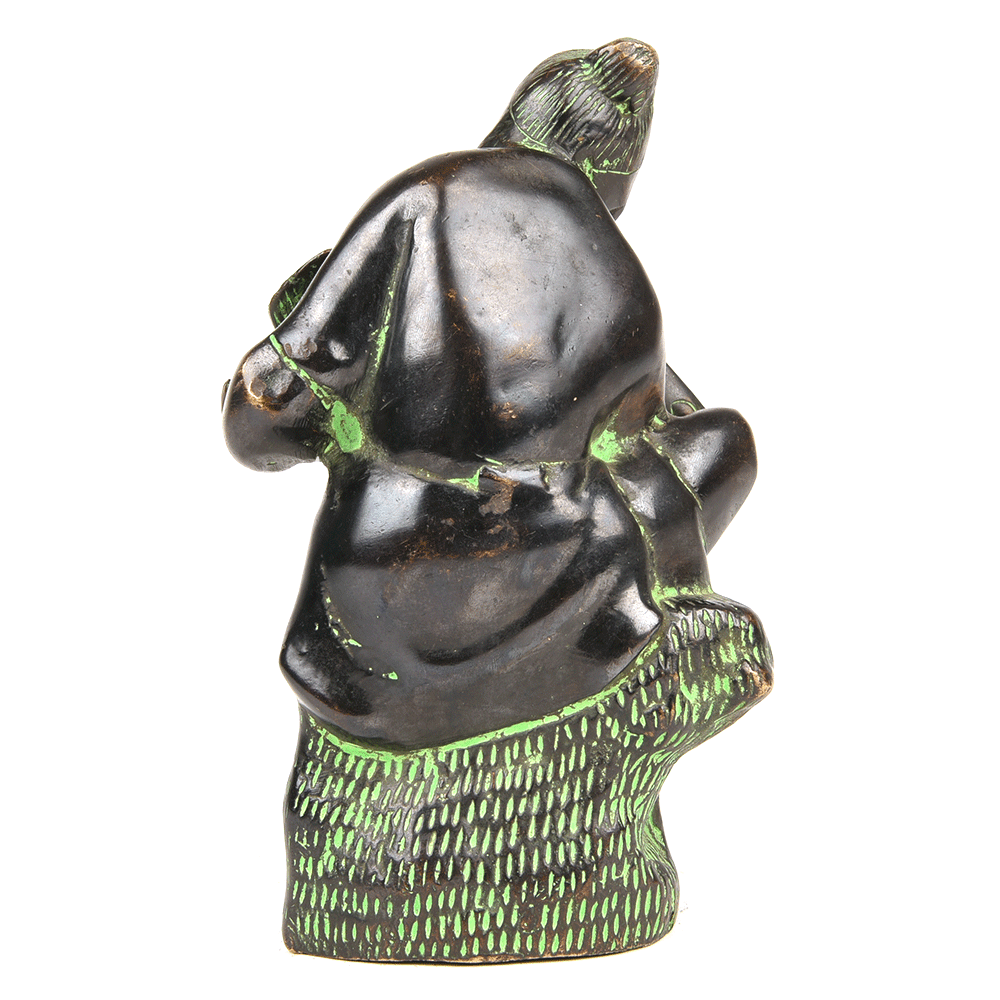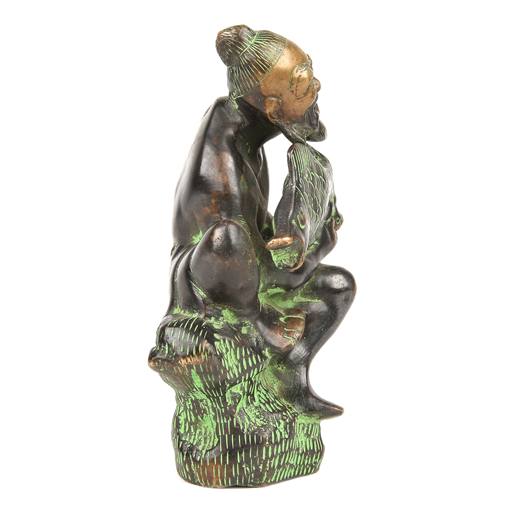 Chinese Bronze Fisherman Sculpture Figurine Fish Basket Holding Fish.