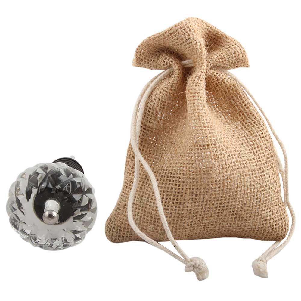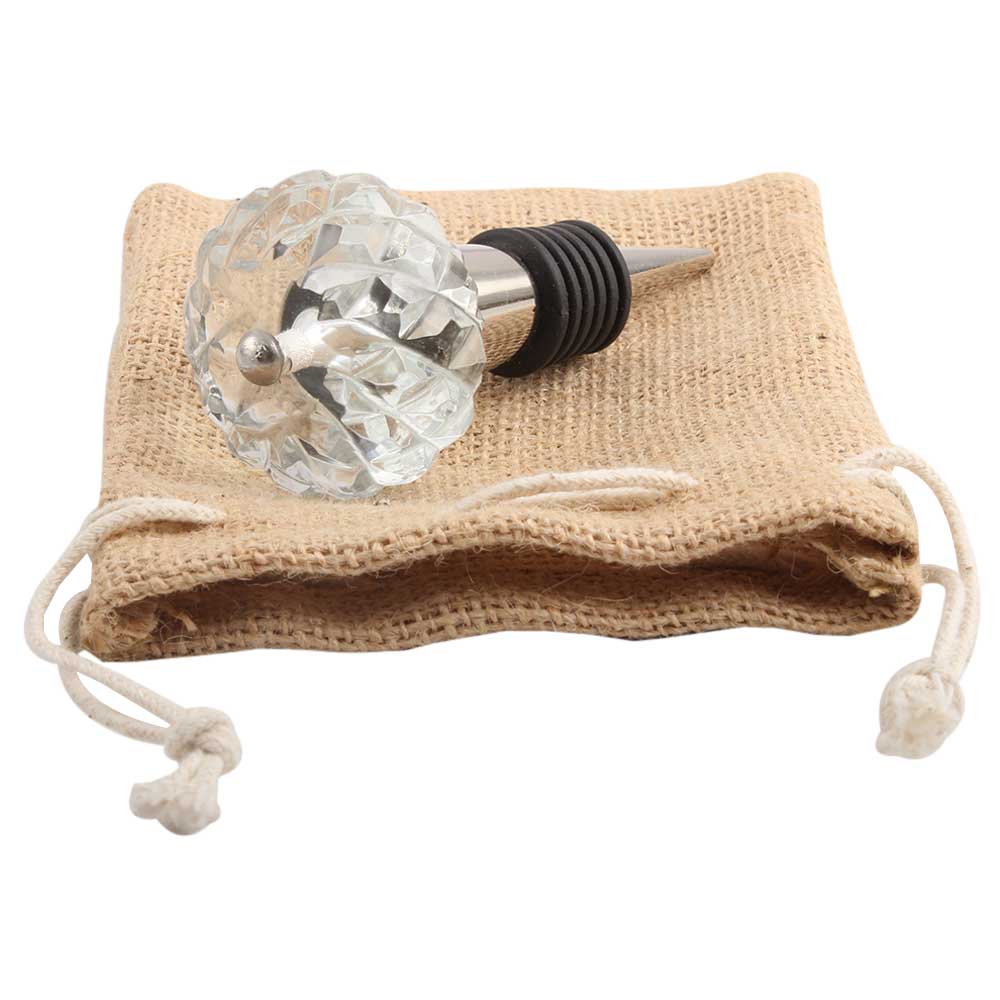 Clear Beautiful Fine Cut Glass Wine Stopper.zinc alloy wine bottle stopper with attractive Jute Bag Packaging.