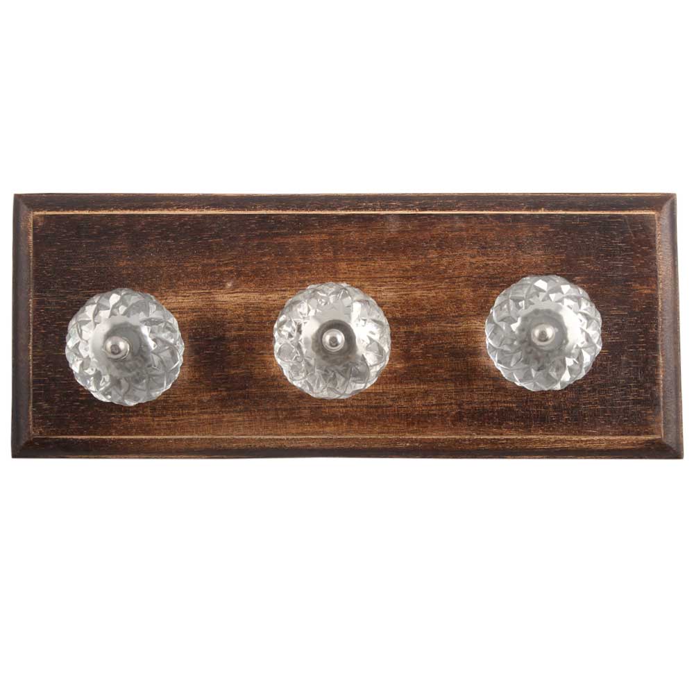 Clear Beautiful Fine Cut Glass Wooden Hook. A Perfect Complement to the Soft Tone of the Wood are these White Traditional Hat & Coat Hook Made of Genuine Porcelain and Brass. It can be use to Hang Jewellery, Leashes, Towels, Scarves, Light Weight Sweaters, Caps Etc.