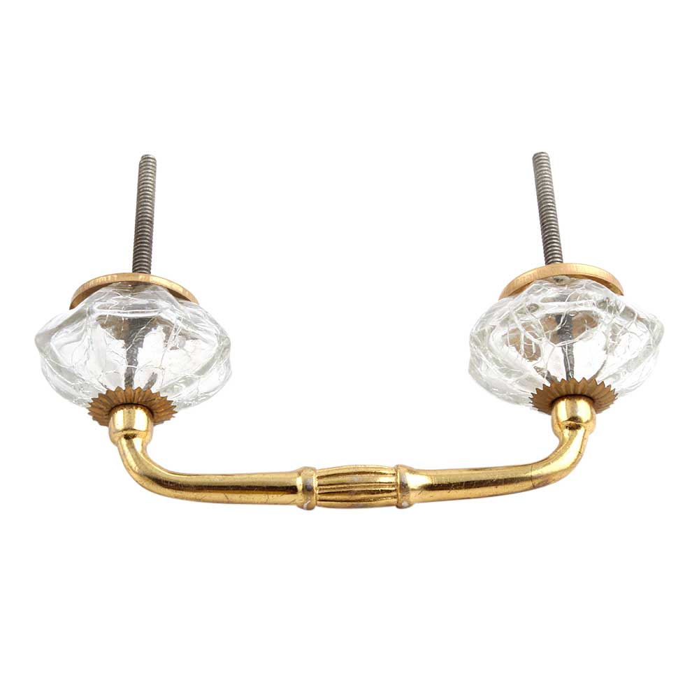 Clear Crackle Glass Bridge Handle. Ideal for Drawer, Dresser, Cabinet, Wardrobe, Cupboard and Almirah etc.