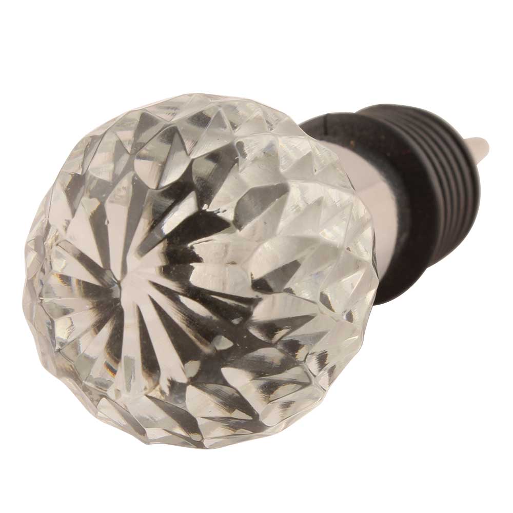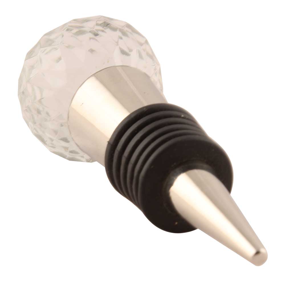 Clear Diamond Cut Glass Wine Stopper. Zinc Alloy Wine Bottle Stopper with Attractive Jute Bag Packaging.