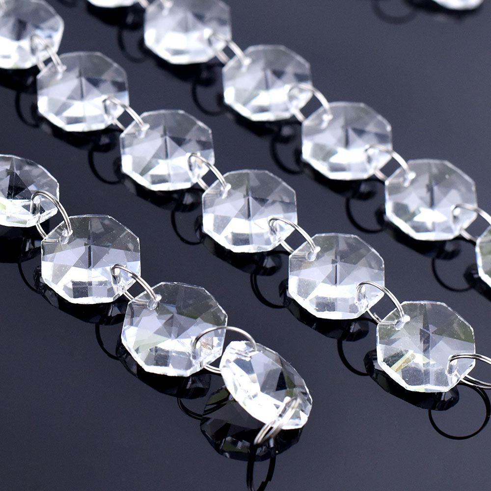 With this stunning crystal garland strand, you can have a stylish wedding. It can be used to decorate a floral display, make a crystal curtain, have a center piece wishing tree, or decorate a table. Each garland contains 50 crystal drop. This is the same type of crystal that is used to adorn antique and vintage crystal chandeliers. Crystal glass beads have a brilliant faceted edge that catches the light, making them pure and sparkly. High hardness, difficult to scratch. Metal rings hold the crystal strands together, allowing you to easily adjust the length and width of the strands.