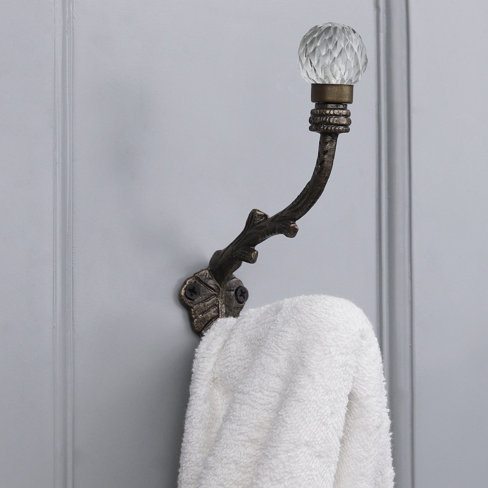 Clear Glass Round Iron Heavy Duty Wall Hook – Single Piece