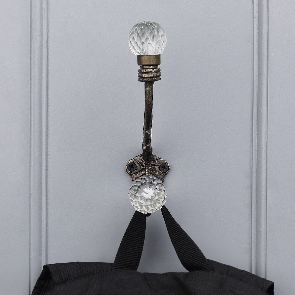 • Clear Glass Round Iron Heavy Duty Wall Hook