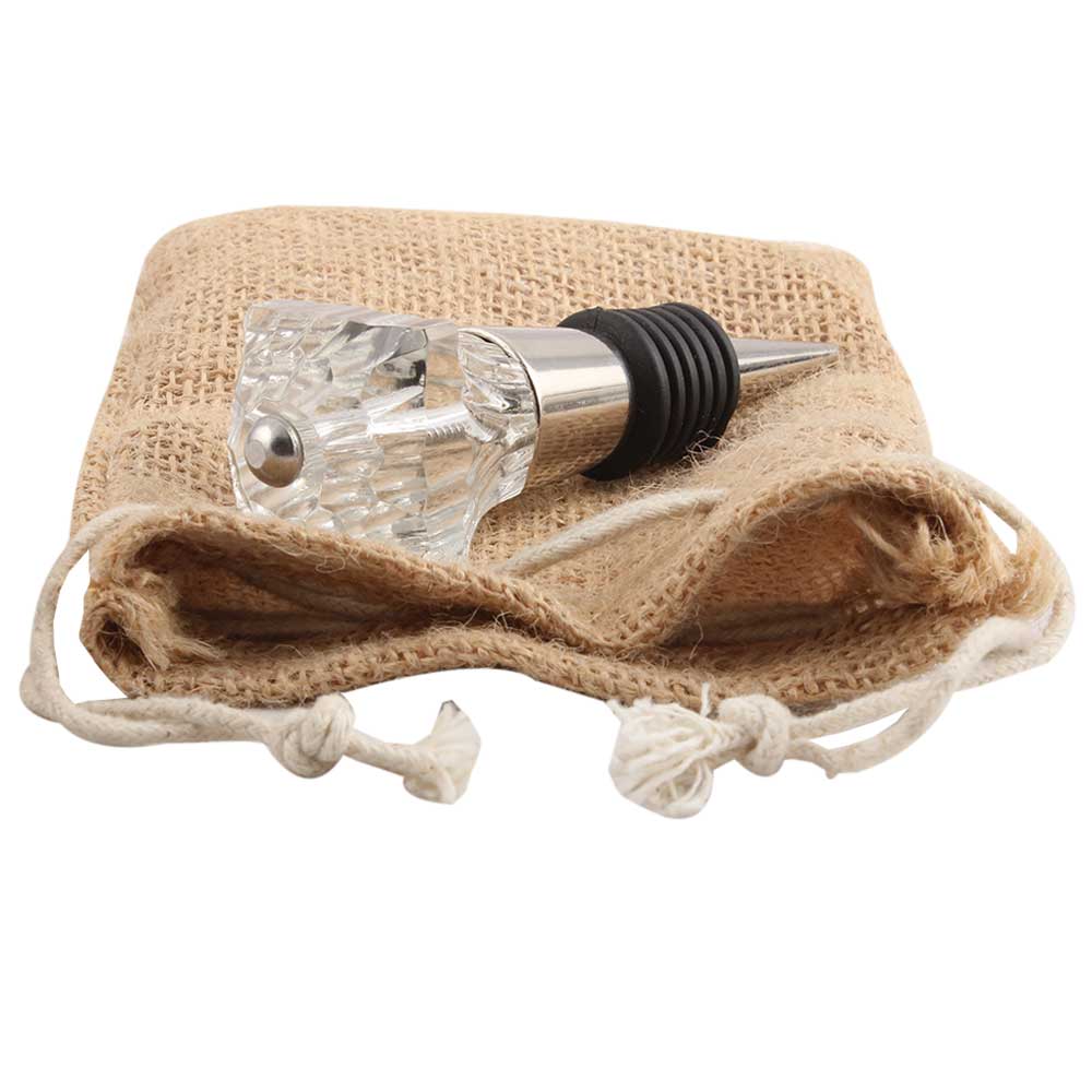 Clear Glass Square Cut Wine Stopper.zinc alloy wine bottle stopper with attractive Jute Bag Packaging.