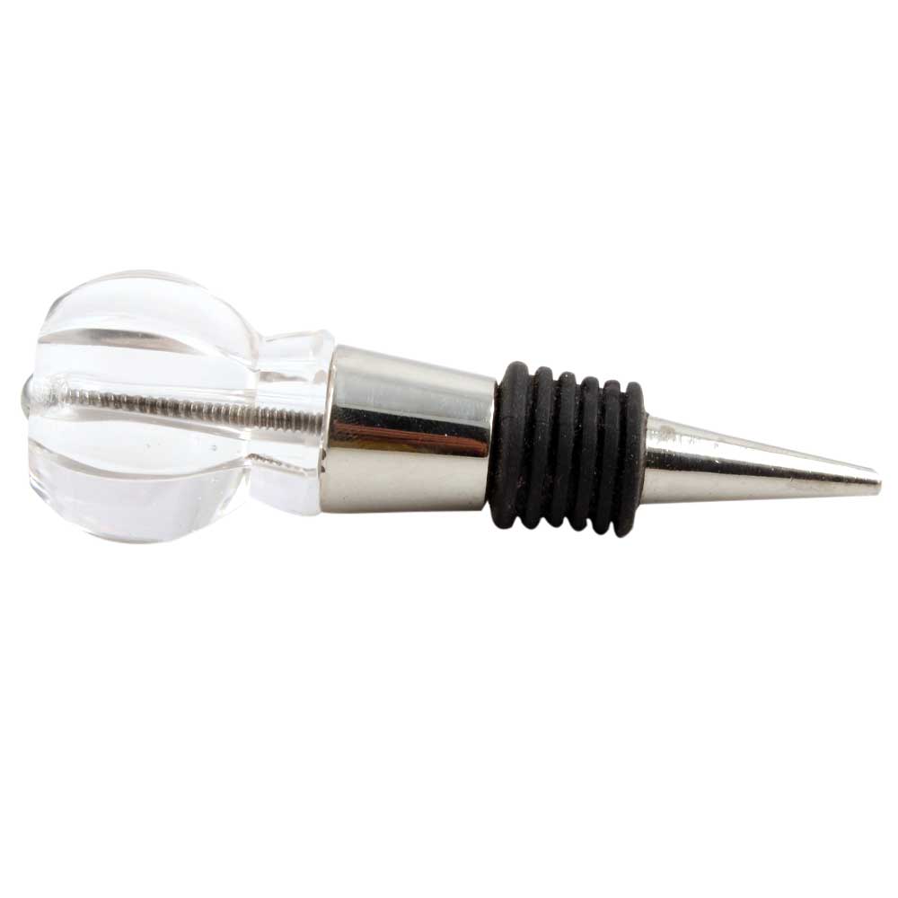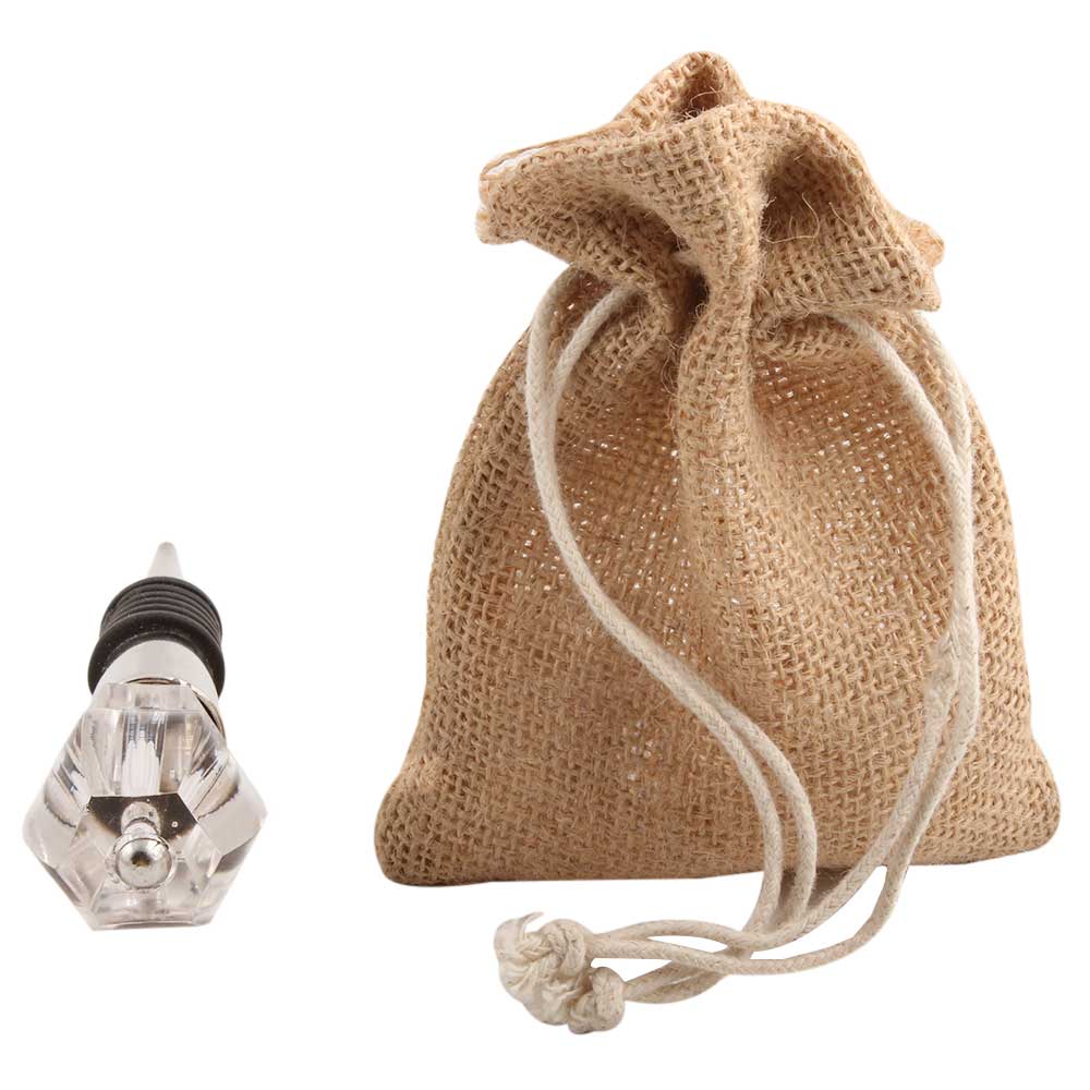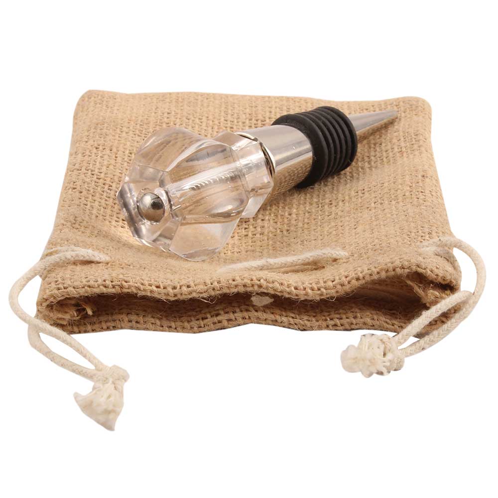 Clear Hexagon Cut Glass Wine Stopper. Zinc Alloy Wine Bottle Stopper with Attractive Jute Bag Packaging.