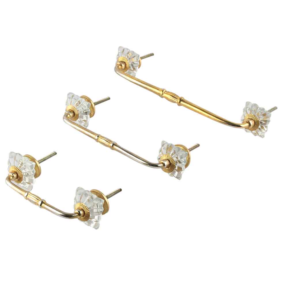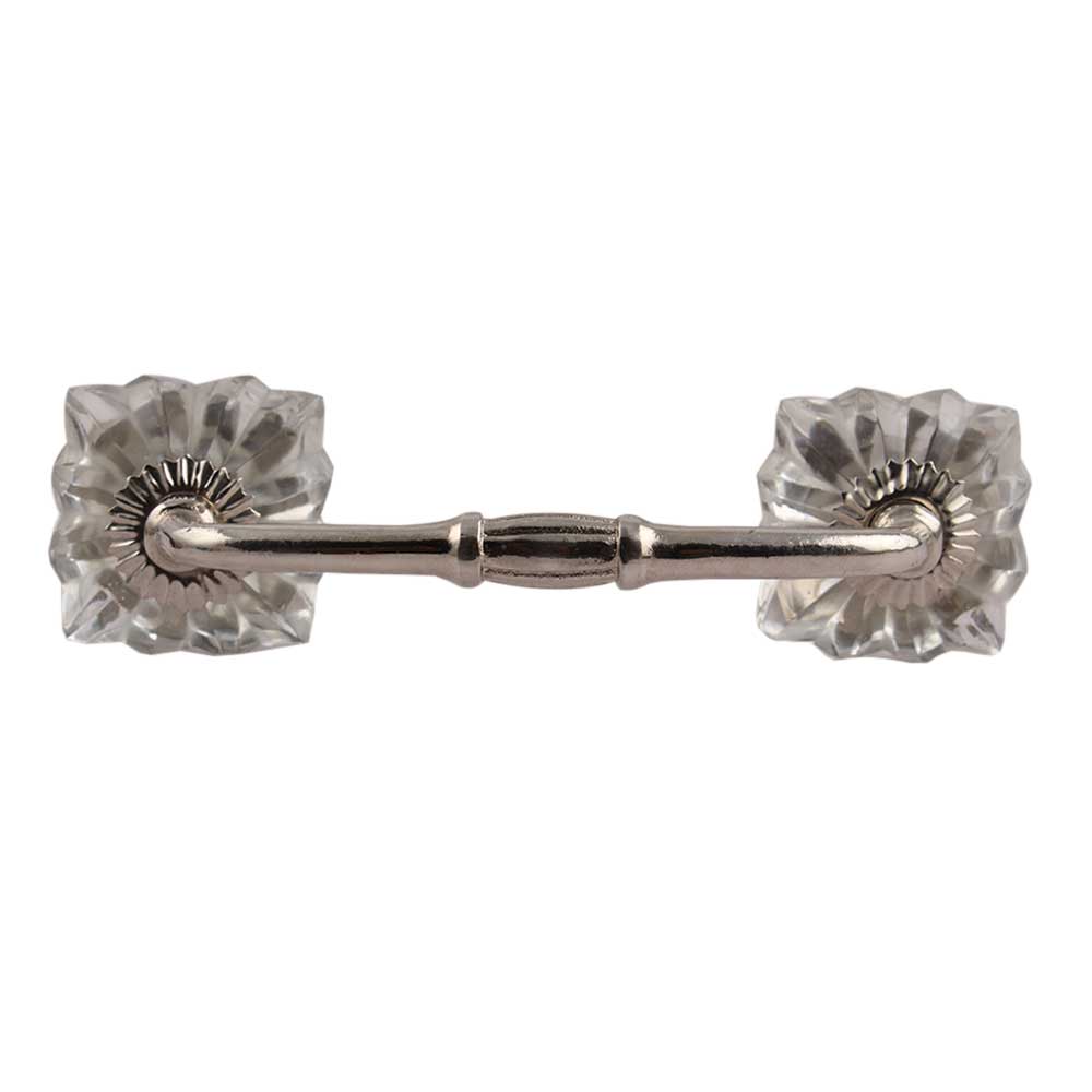 Clear Square Melon Glass Bridge Handle. Ideal for Drawer, Dresser, Cabinet, Wardrobe, Cupboard and Almirah.