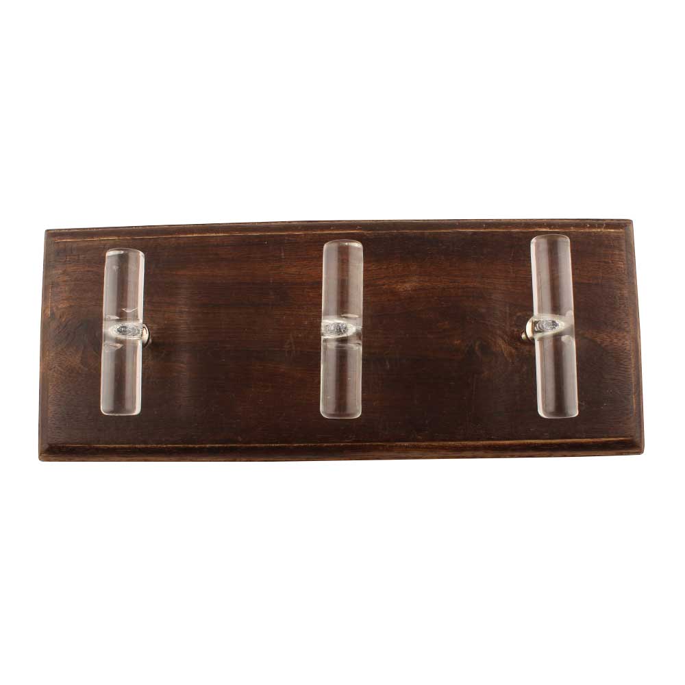 Clear Tube Glass Wooden Hook. A Perfect Complement to the Soft Tone of the Wood are these White Traditional Hat and Coat Hook Made of Genuine Porcelain and Brass. It can be used to Hang Jewelry, Leashes, Towels, Scarves, Light Weight Sweaters, Caps etc.