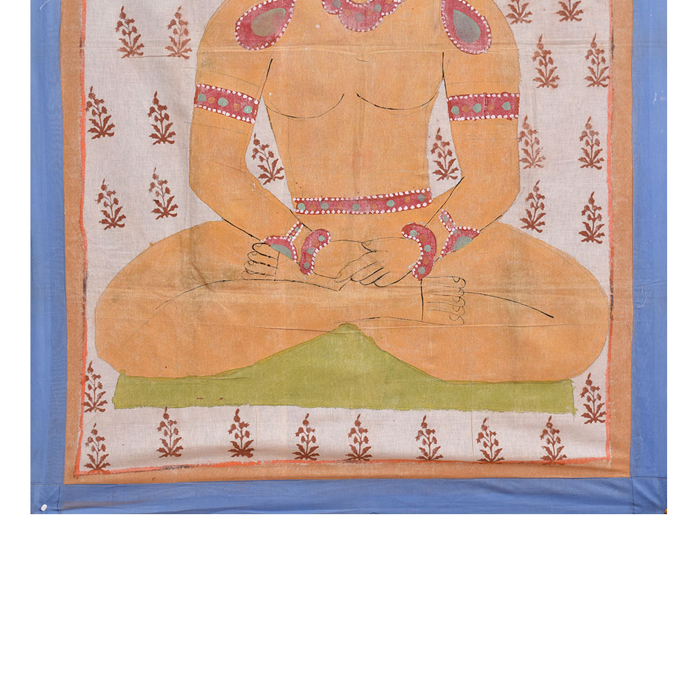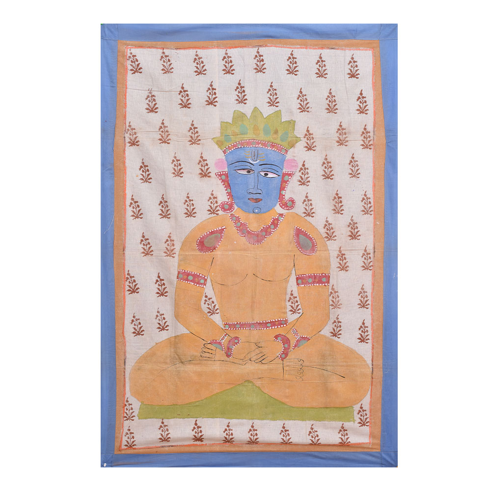 This cloth painting represents The Jain faith, an ancient Indian religion with a rich artistic and architectural past. Parsvanatha, one of Jainism's main deities, is portrayed in different types of art. On the other hand, an exceedingly uncommon miniature painting of a sitting figure of Parsvanatha is regarded as a notable masterpiece of Jain art. The picture is thought to be from the late 15th or early 16th century and is now in a private collection. It's painted on a rectangular piece of fabric. Parsvanatha is shown sitting, his legs crossed and his hands resting on his knees. He is dressed simply, with his hair twisted in a knot on his head. His face appears placid and pleasant, with closed eyelids and a faint grin on his lips. The intricacy and delicacy of its workmanship make this painting uncommon and expensive. The artist created delicate and realistic lines with a thin brush, bringing the figure of Parsvanatha to life. The painting's brilliant and rich colours contribute to its overall appeal. The handcrafted painting is a masterpiece of Jain art, and its scarcity increases its value among art collectors and lovers. The painting's significance stems from its depiction of Parsvanatha, considered one of Jainism's 24 Tirthankaras. Tirthankaras are enlightened beings who have achieved freedom from the cycle of birth and death. They are the focus of Jain devotion and are said to provide direction and protection to their devotees. The picture of Parsvanatha depicts this celestial person and serves as a reminder of the spiritual path that Jain believers strive to pursue.