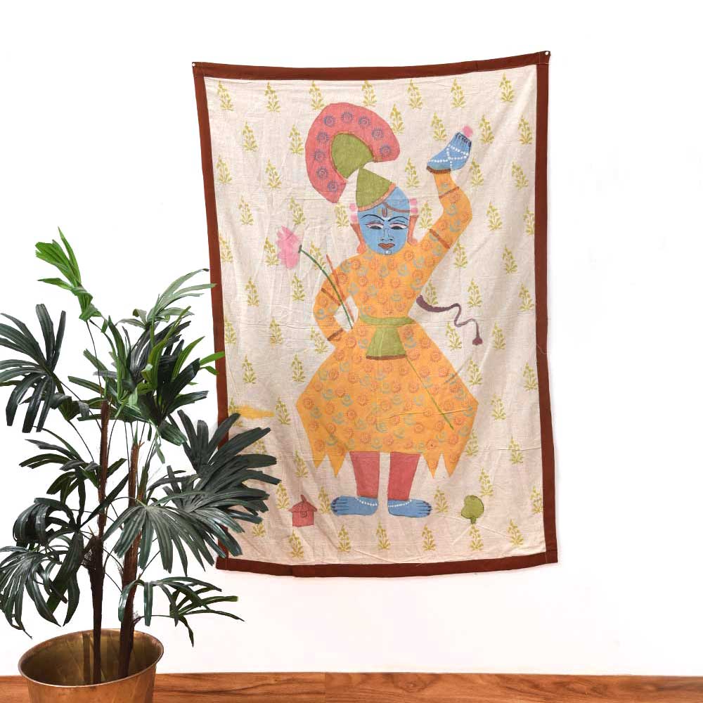 Lord Krishna is one of Hinduism's most cherished deities. He is well-known for his magnificent beauty, intellect, and fun personality. Cloth paintings, which uniquely reflect Lord Krishna's spirit and attractiveness, are one of the most preferred methods to represent him. This handmade Lord Krishna cloth painting is a beautiful work that takes a talented hand to complete. The painting's exquisite features and brilliant colours make it a captivating piece of art. Lord Krishna, a Hindu god noted for his heavenly beauty and lovely nature, is shown in the picture. The choice of colours is one of the most significant components of a handmade Lord Krishna cloth painting. The artist chooses colours that best reflect Lord Krishna's characteristics, such as blue for his complexion and orange for his garments. Each hue is applied with accuracy and care, resulting in a genuine portrayal of Lord Krishna. Intricate elements such as Lord Krishna's jewels, peacock feathers, and flute are also included in the artwork. The artist spends hours polishing these details, giving the painting depth and substance. The end product is a work of art that perfectly reflects Lord Krishna's incomparable beauty and charm. A handmade cloth painting of Lord Krishna is a work of art and a symbol of devotion. Many hang these paintings in their homes or temples to demonstrate their love and reverence for Lord Krishna. Each artwork is one-of-a-kind and conveys a particular tale, making it a prized property for many people. Cloth paintings of Lord Krishna are not only gorgeous pieces of art, but they also have deep spiritual value. Many Hindus hang these paintings in their homes or temples to worship Lord Krishna and connect with their faith. The paintings are said to provide good fortune, wealth, protection, and direction.