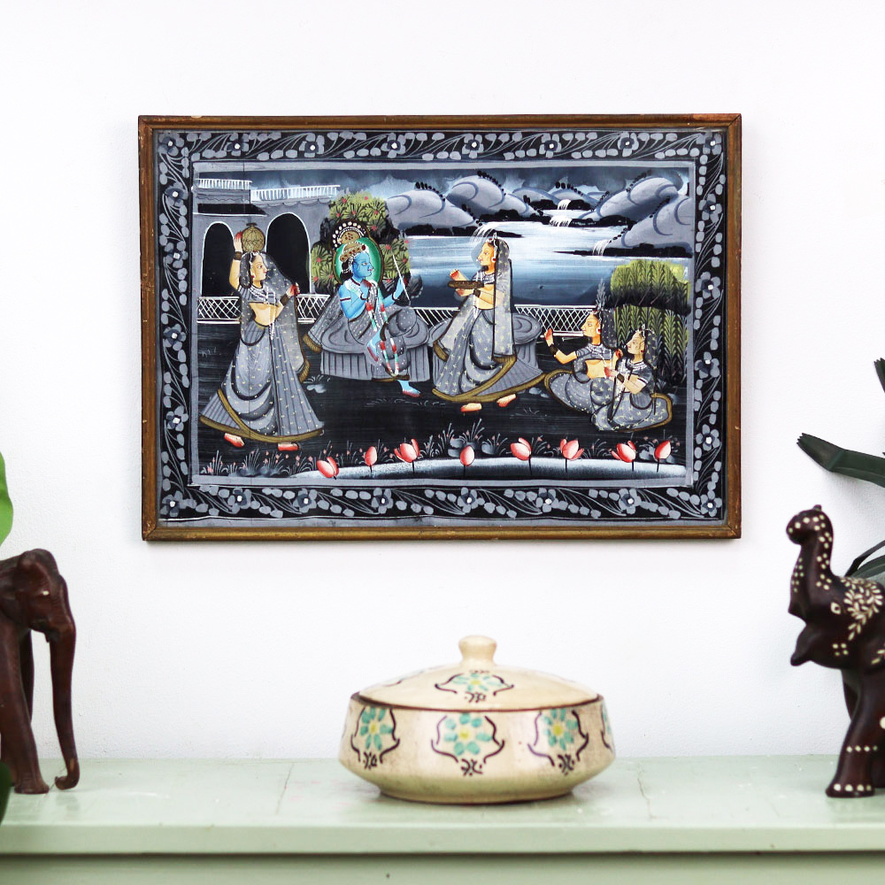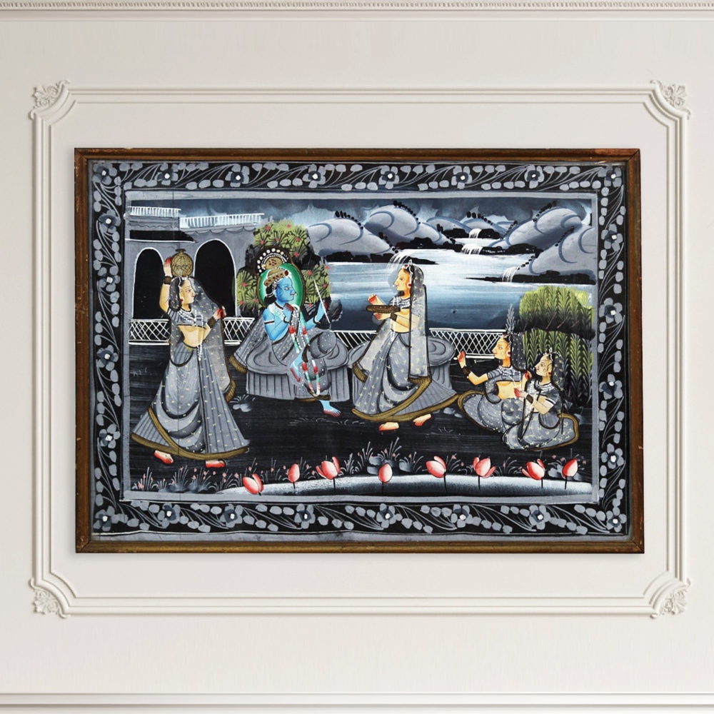 - Vibrant cloth painting of Krishna and his Gopies