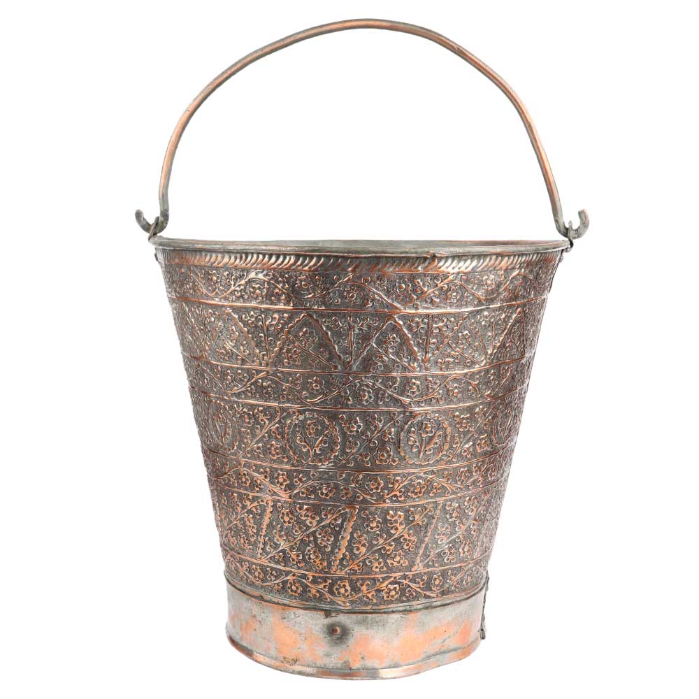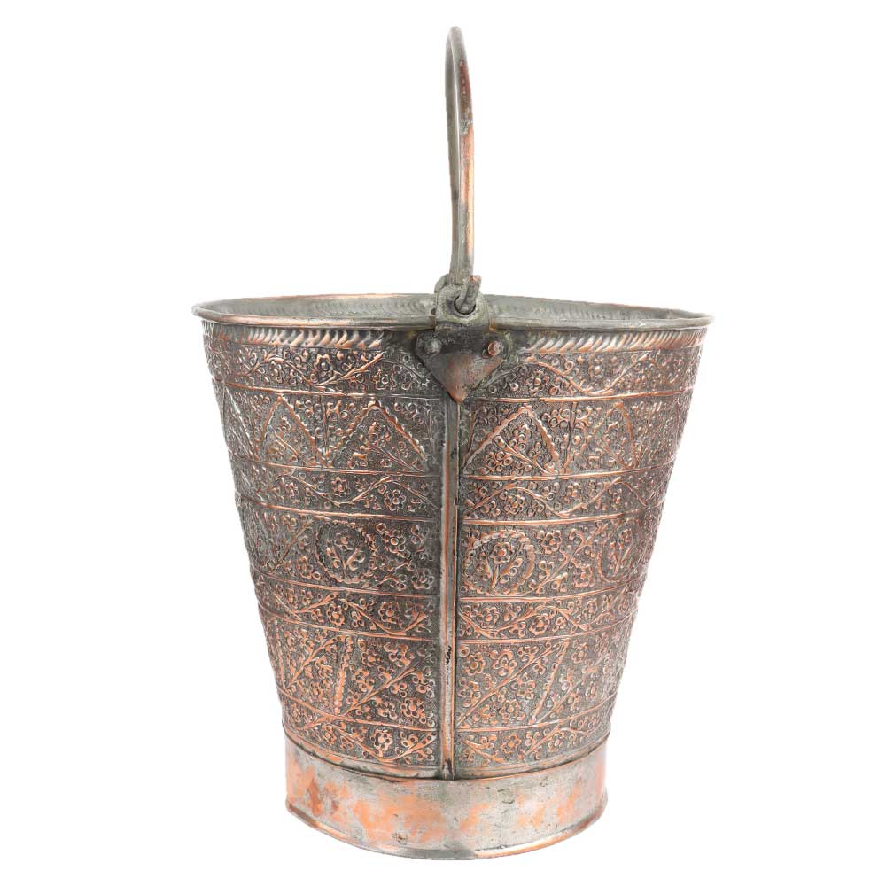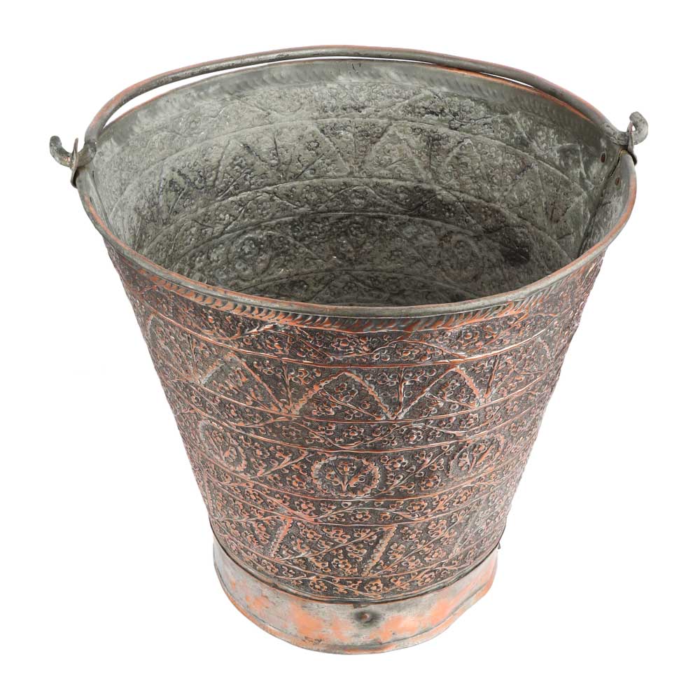 Copper Bucket Floral Kashmiri Repousse Artwork With Handle. Keep it indoors or outdoors wherever you feel like and see the difference it makes to your home decor. Wedding gift, anniversary gift, hotel decoration filled with flowers and dries leaves. Gift for friends and family.