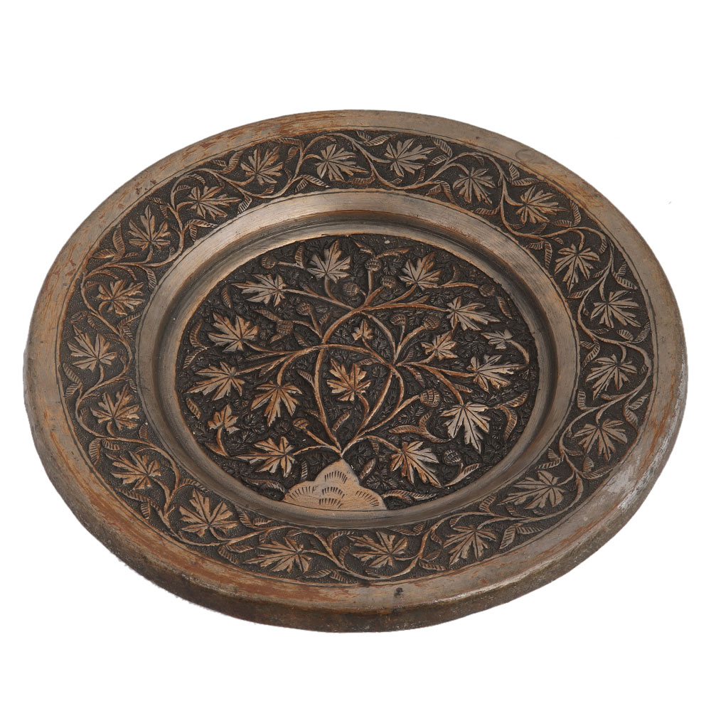 Copper Chiseled with Floral Leafy Designs Wall Hanging plate is used as a Tray Table or Wall Hanging Artwork. Finely Hand-Hammered and Chiseled with Floral , Leafy Designs engraved on the Plate. Wedding gift, home decoration wall hanging, house warming gift.