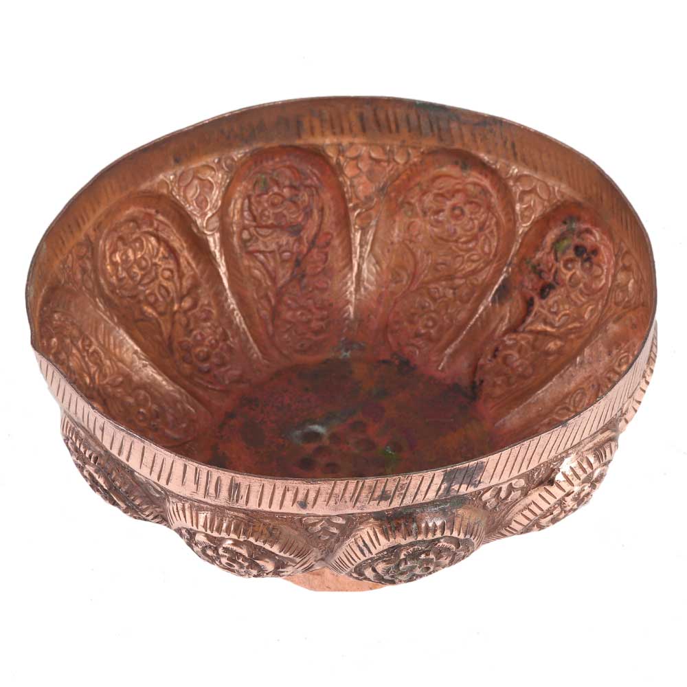 This is a lovely vintage copper bowl  handcrafted and engraved with a flower and foliage pattern on the entire surface of the cup.  The ideal complement to any set or your home kitchen decor.