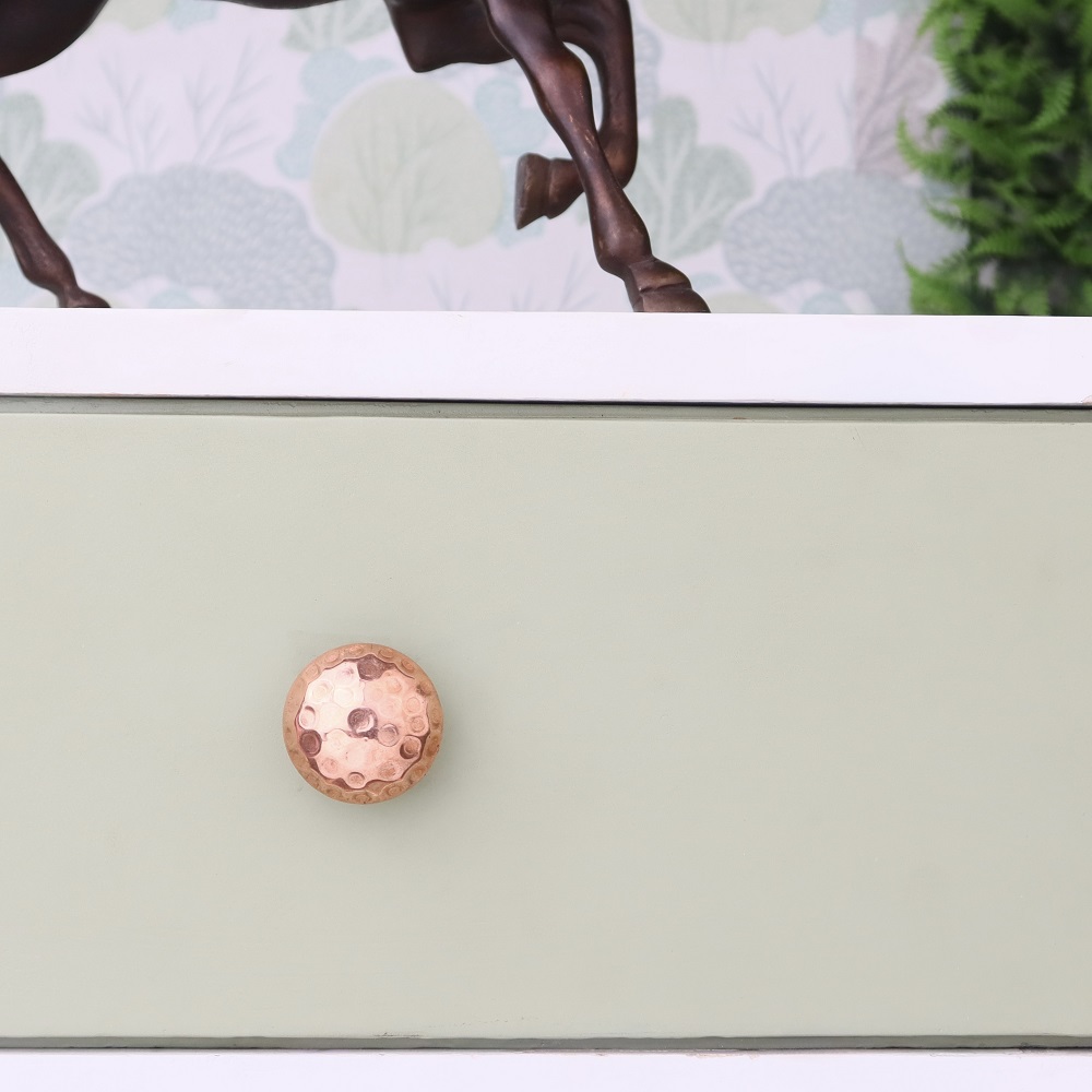 Made from high-quality materials, the Copper Dot Flat Drawer Knobs are designed for durability. Their flat, round shape paired with the copper dot creates a sophisticated and modern aesthetic. The smooth, matte finish ensures a sleek and polished appearance, while the copper accent adds a subtle shine.