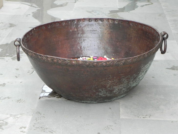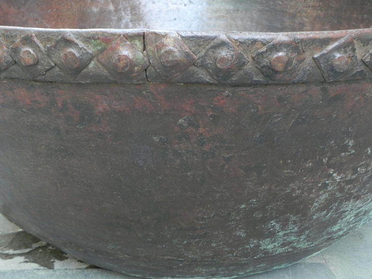 Copper Kadai. One of Its Kind. It Was Used Before to Cook Food to Serve Gods and Deities. Now It is Ideal to Put Flowers and Floating Candles and Use It as a Perfect Indoor/Outdoor Decoration. The Beauty of This Piece Lies in the Way of Making This Piece. It is Completely Done by Hand. It Serves as a Beautiful Bronze Bird Bath Too.