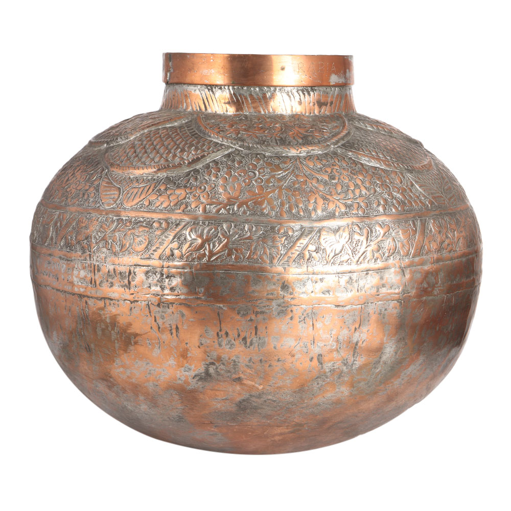 Buy a copper water pot online on our website and have it delivered directly to your home. This water pot is made of high quality copper and will give a long lasting impression to the interior. As it is handmade by skilled Indian artisans using traditional methods, it is an ideal item for exhibitions, museums and vintage art collections. It is engraved with beautiful floral motifs in Islamic art, which makes it a beautiful matka for your home and office decor. Place this matka as a flower pot in your living room, hallway or entryway to enhance the decoration. Gift for any special and festive occasion for your family, friends and relatives.